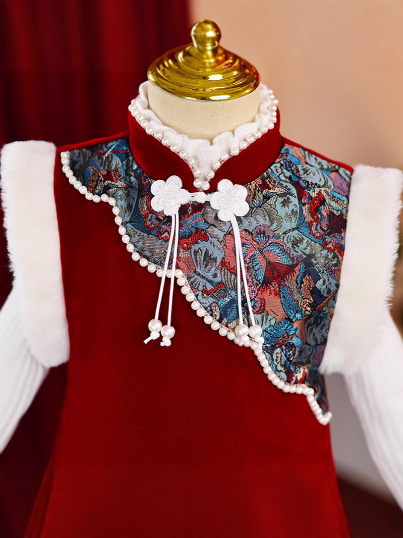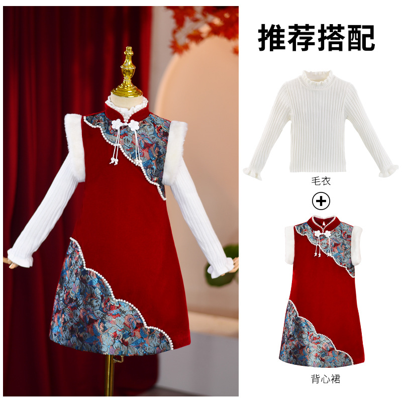 Для девочек бархатное платье Зимний теплый набор Малый и средний детский чонсам детский костюм новый китайский костюм принцессы юбки