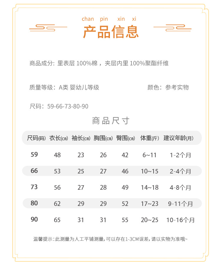 Anyang детская одежда из хлопка среднего толстого ребенка тонкая хлопчатобумажная куртка 40g Новорожденный хлопчатобумажная одежда 0-12 месяцев