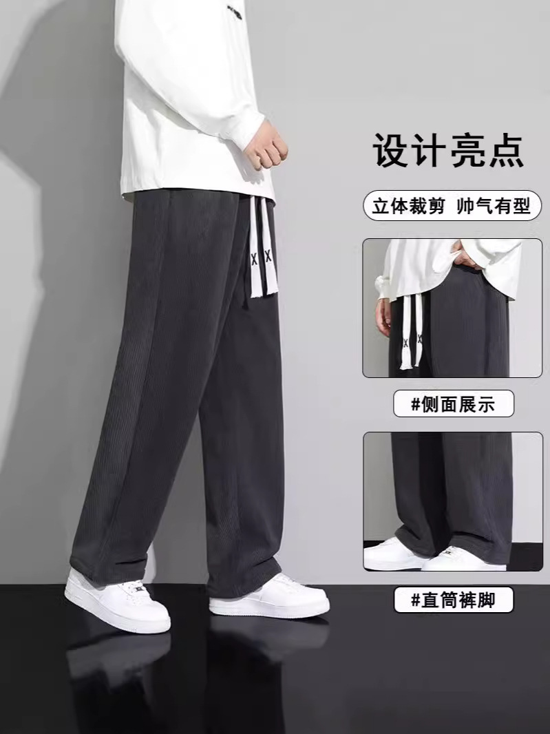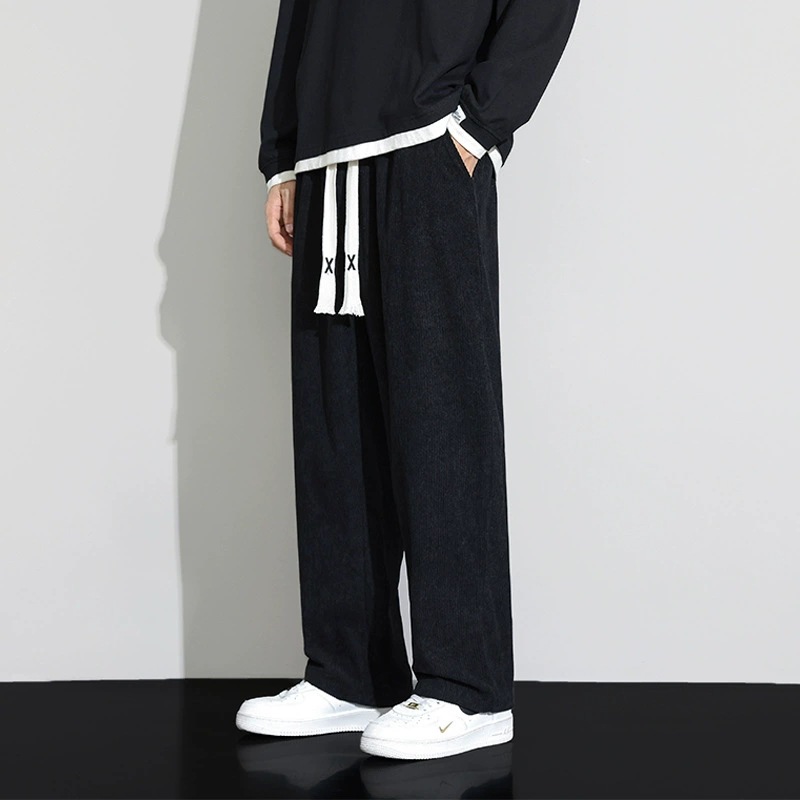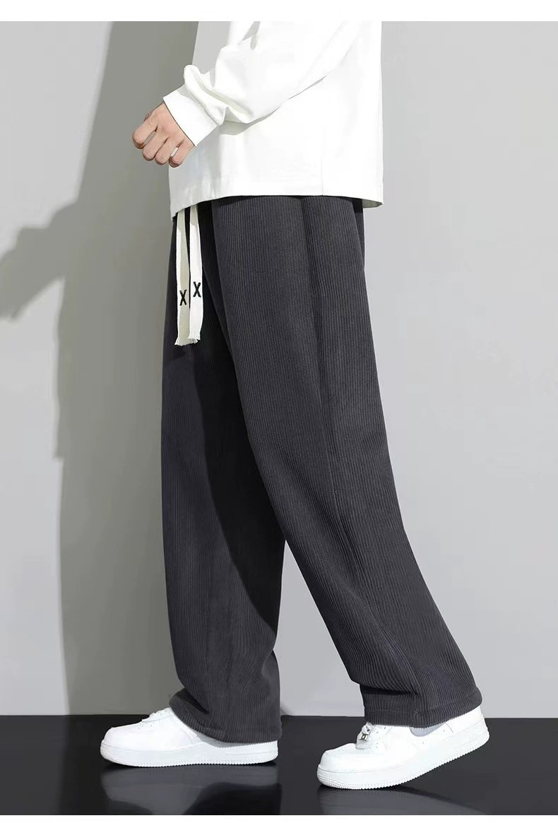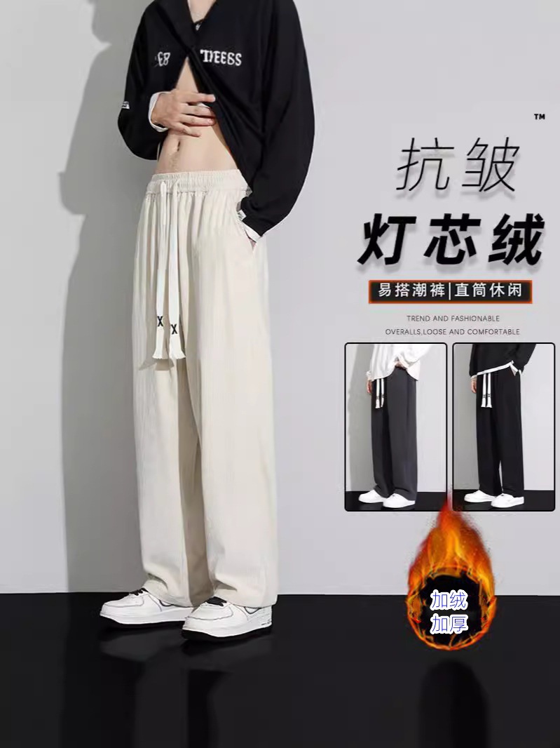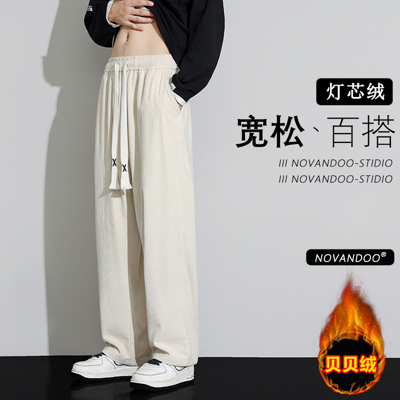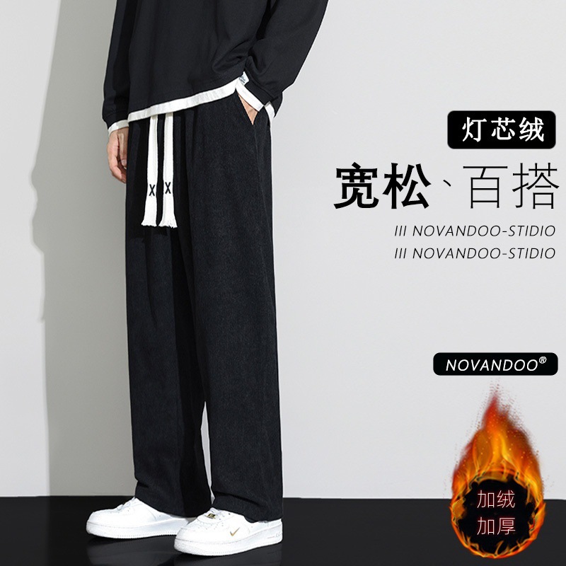 Осенью и зимой плюшевые толстые вельветовые брюки мужские корейские трендовые спортивные штаны дикие свободные прямые брюки