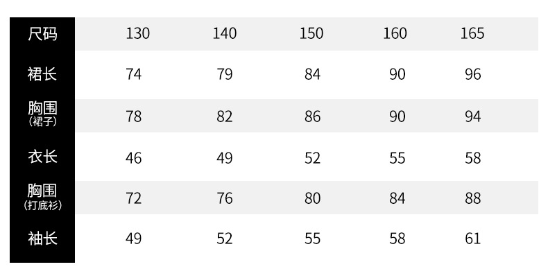 130cm; 140cm; 150cm; 160cm; 165cm; 120