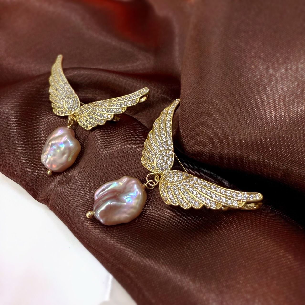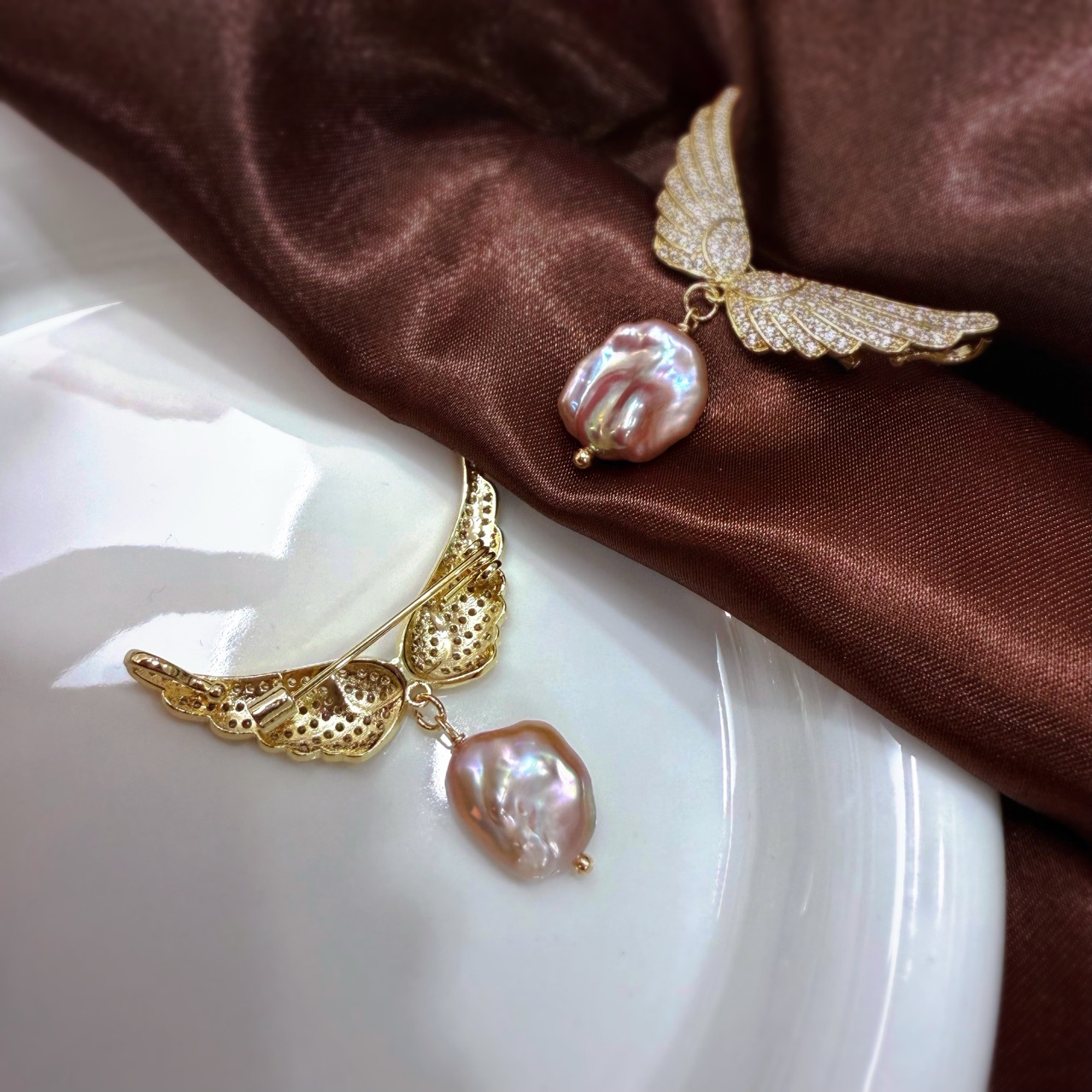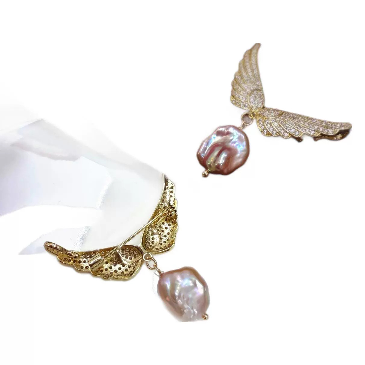 Ангельские крылья брошь легкий экстравагантный циркон натуральный пресноводный жемчуг простой дикий красочный темпераментный костюм