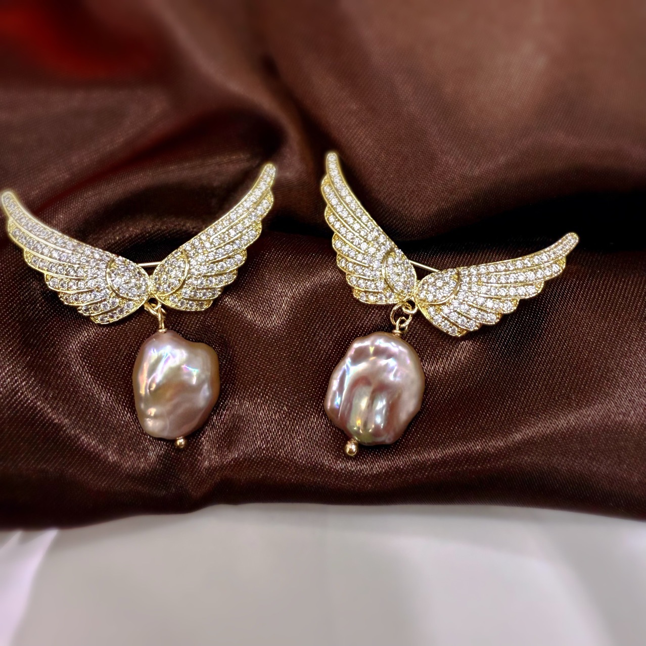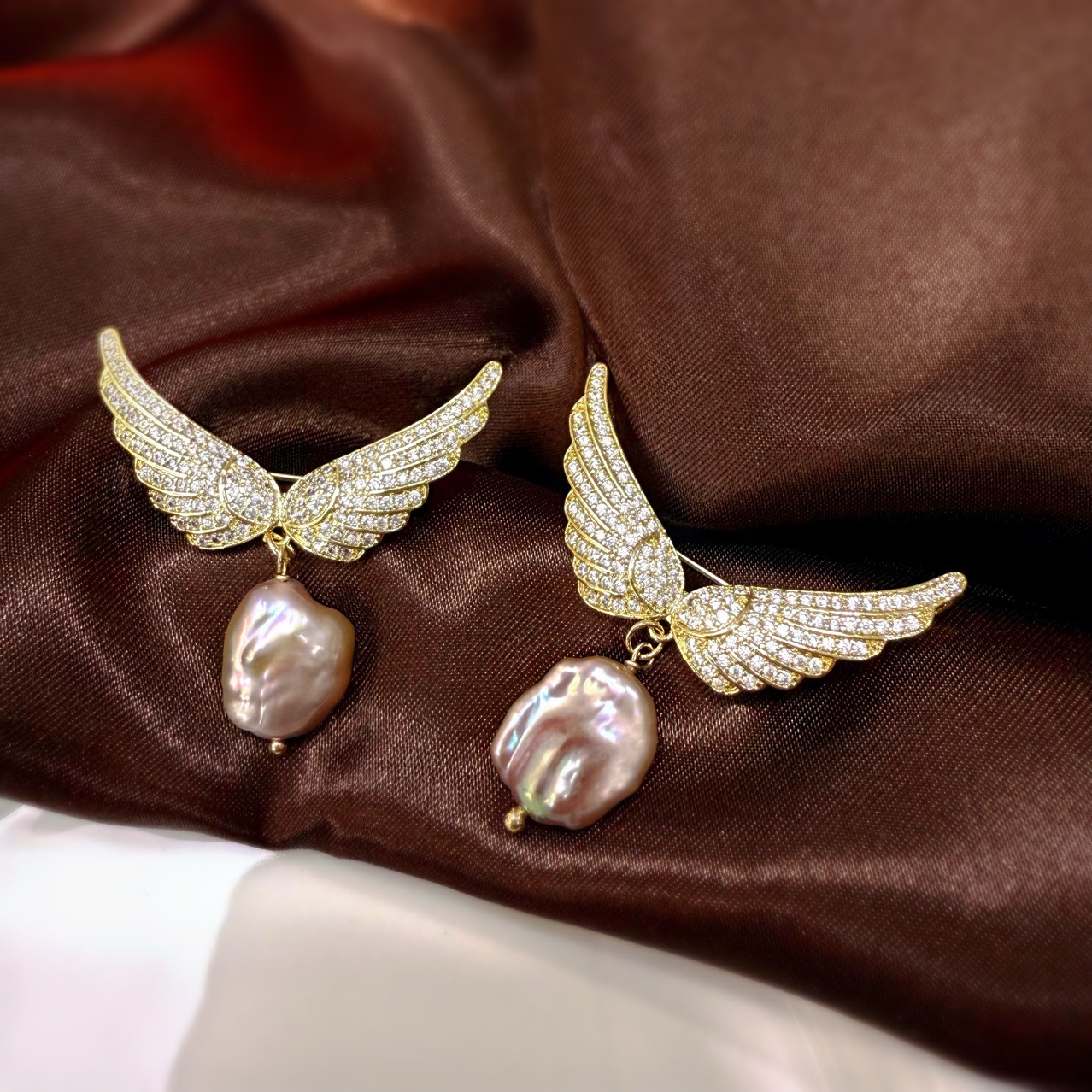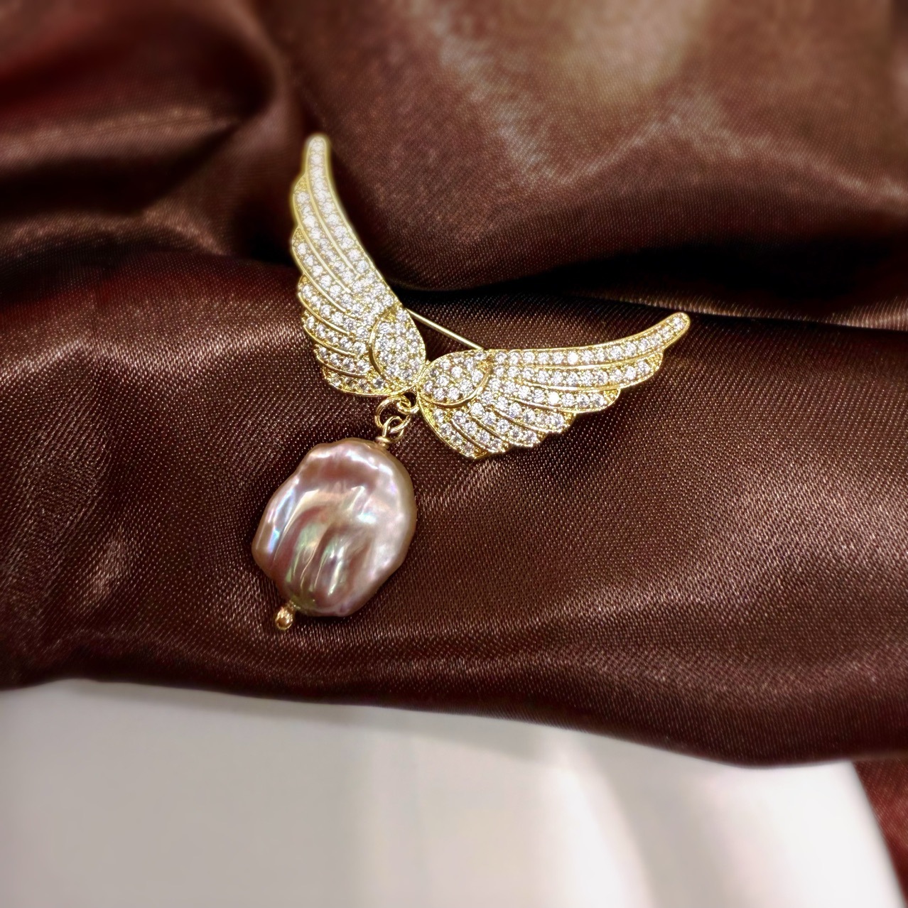 Ангельские крылья брошь легкий экстравагантный циркон натуральный пресноводный жемчуг простой дикий красочный темпераментный костюм