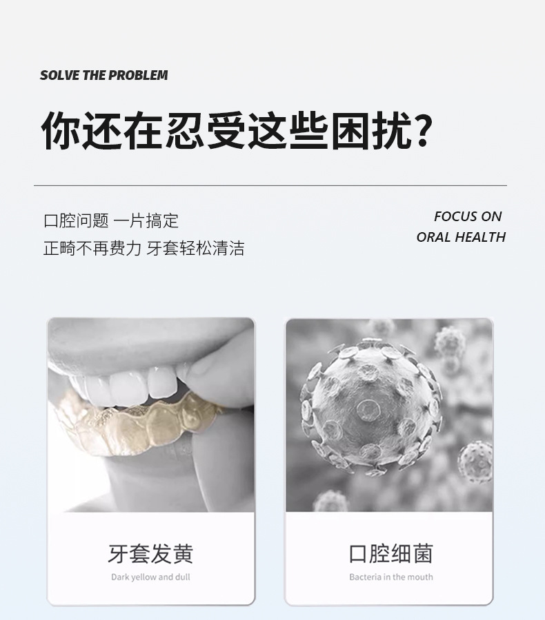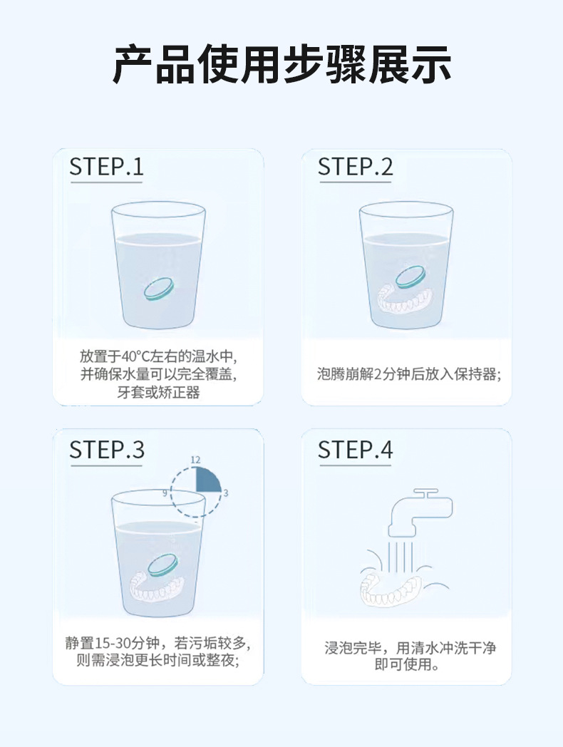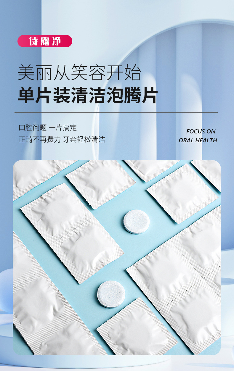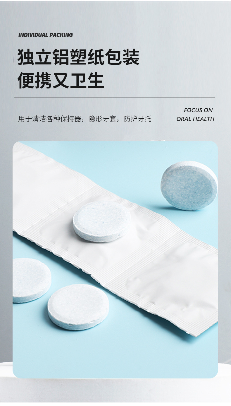 Таблетки для чистки зубных протезов, ретейнеров, невидимых брекетов, ароматизированные шипучие таблетки, в алюминиевых пакетах, новые и старые версии распределены случайным образом.