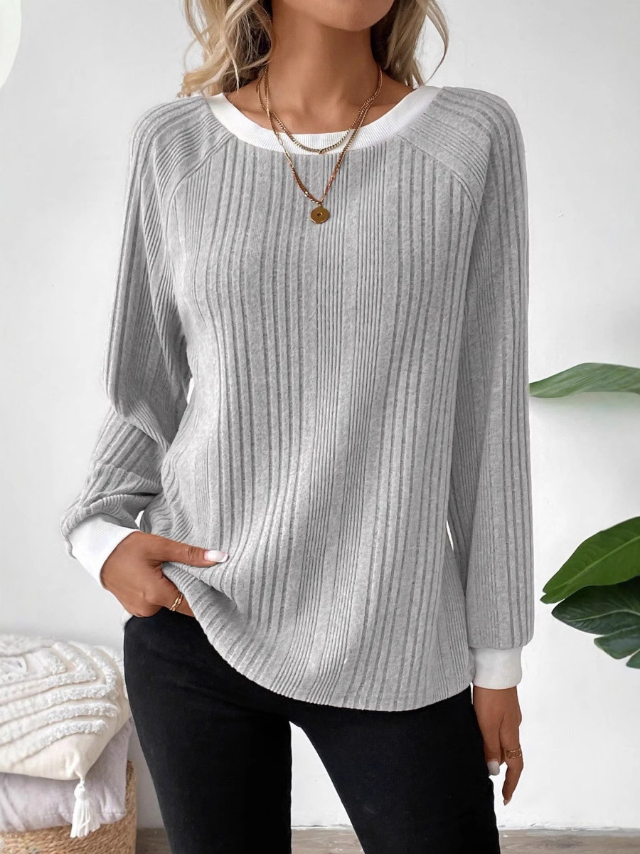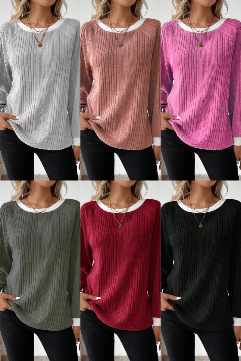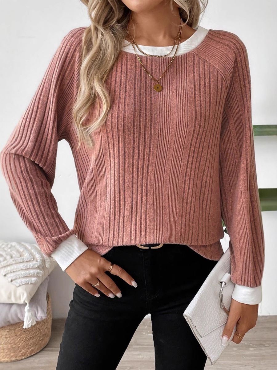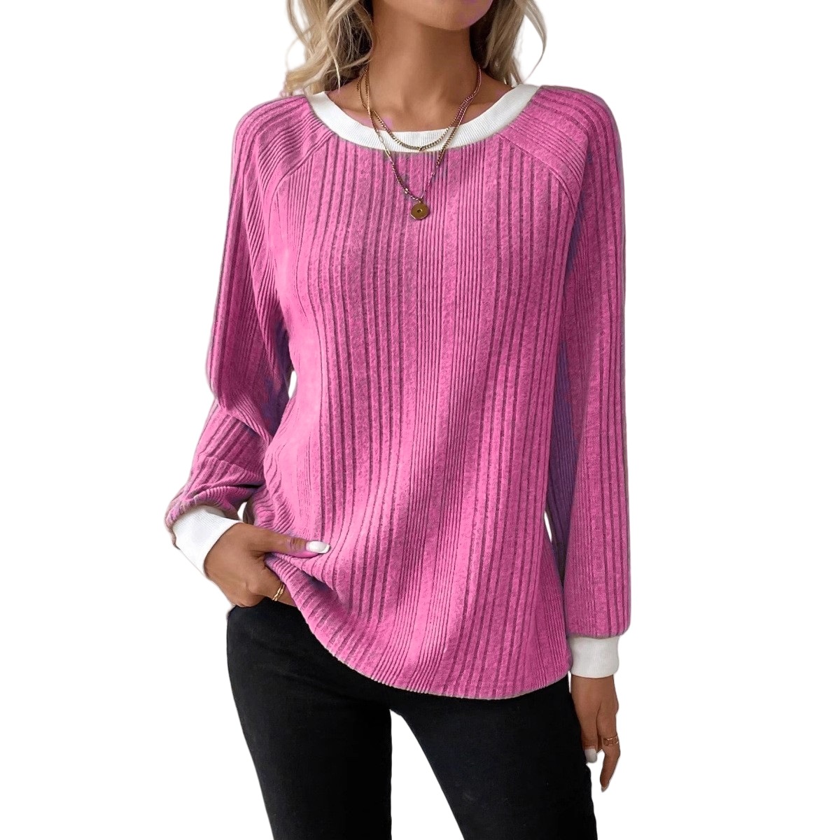 2024 Европейская и Американская Независимая Станция Амазонка Осень Зима Новый Длинный Рукав Сплошной Ратчатый Ям Длинный Рукав Свитер