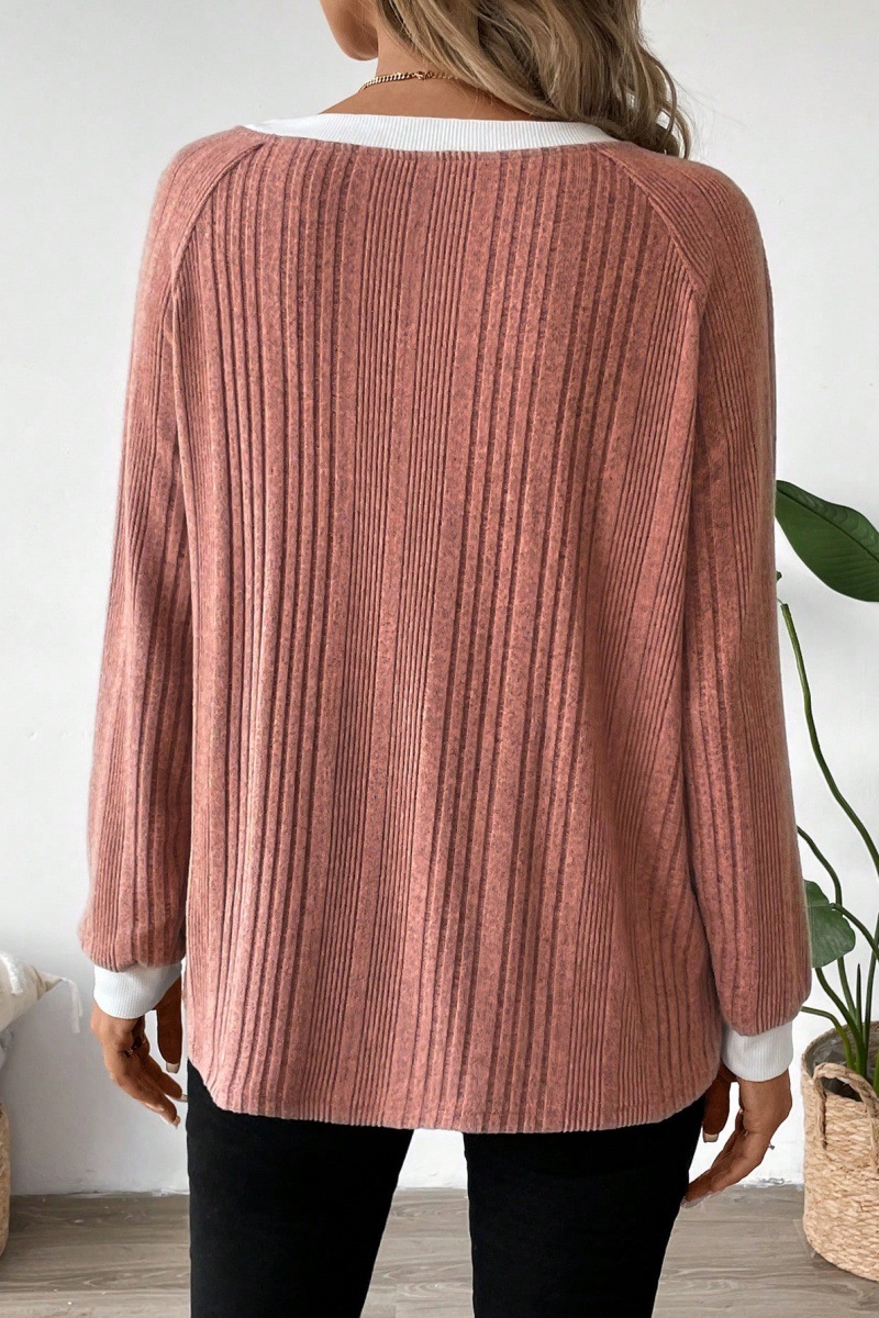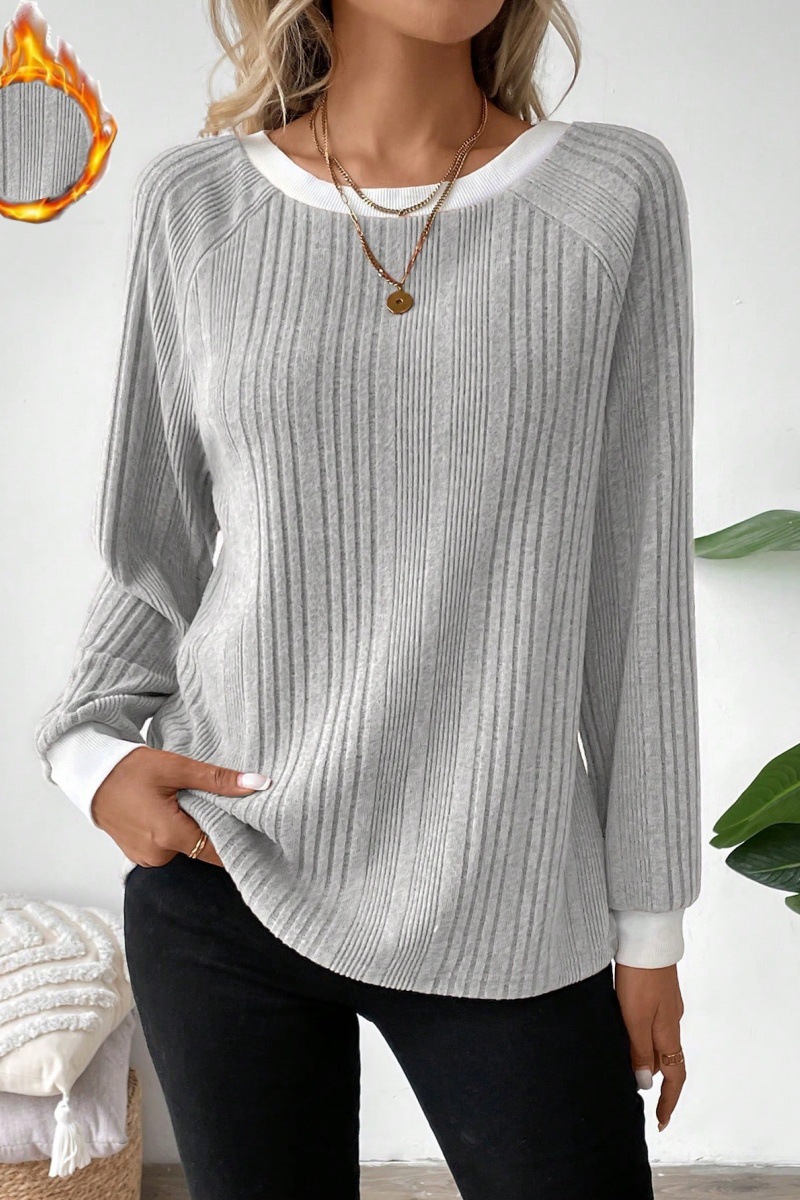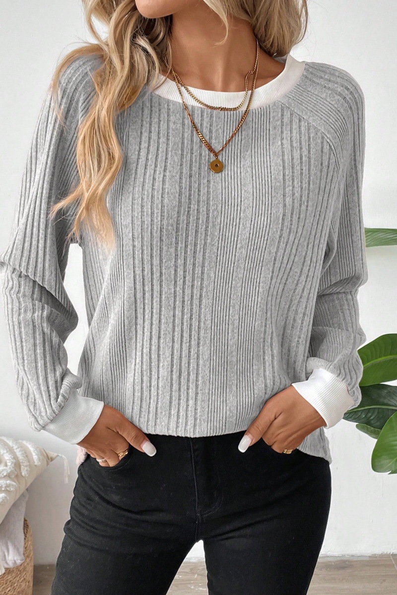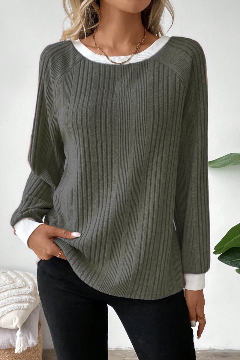 2024 Европейская и Американская Независимая Станция Амазонка Осень Зима Новый Длинный Рукав Сплошной Ратчатый Ям Длинный Рукав Свитер