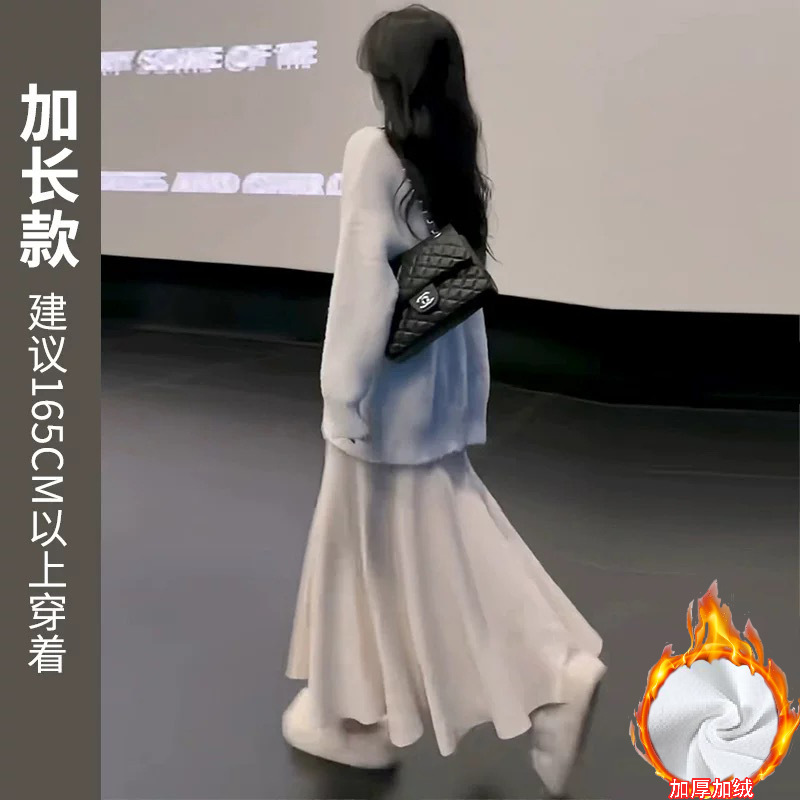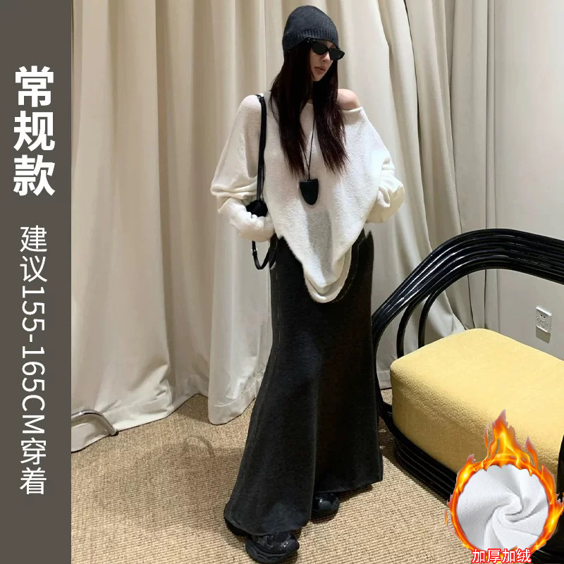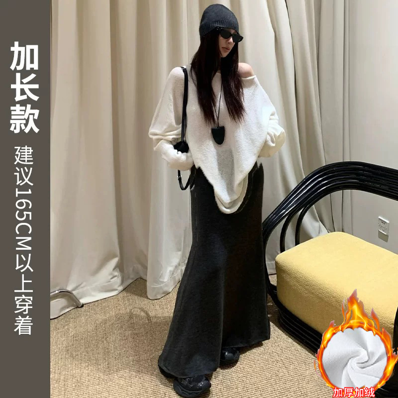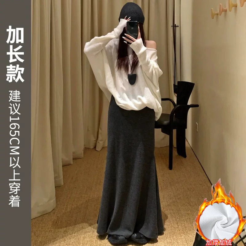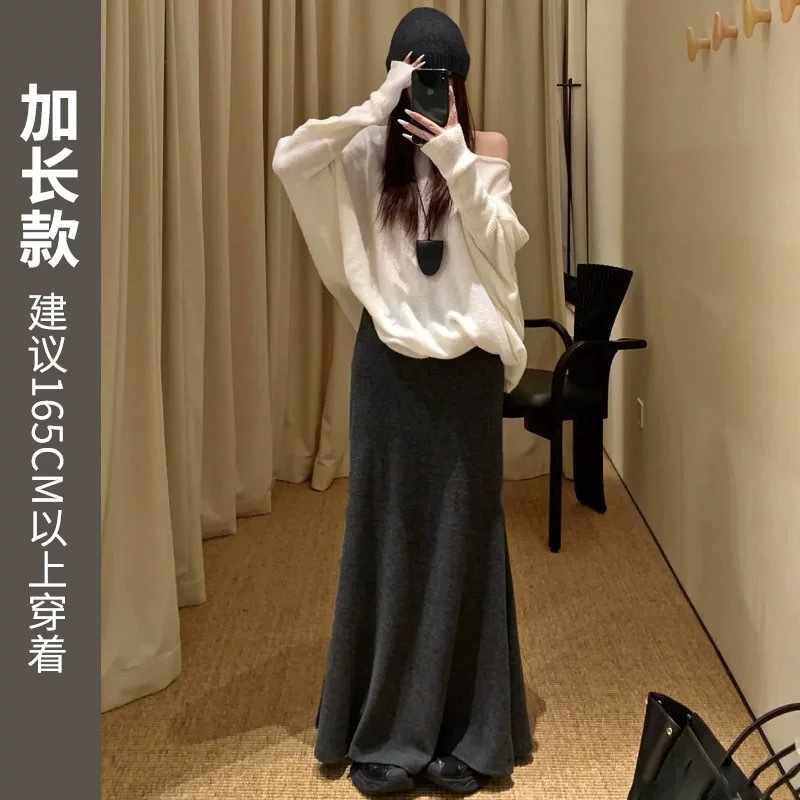 Вязаная юбка «рыбий хвост» для женщин, осень и зима 2024, новая тонкая, нежная, элегантная, высококачественная, удлиненная белая юбка, облегающая бедра