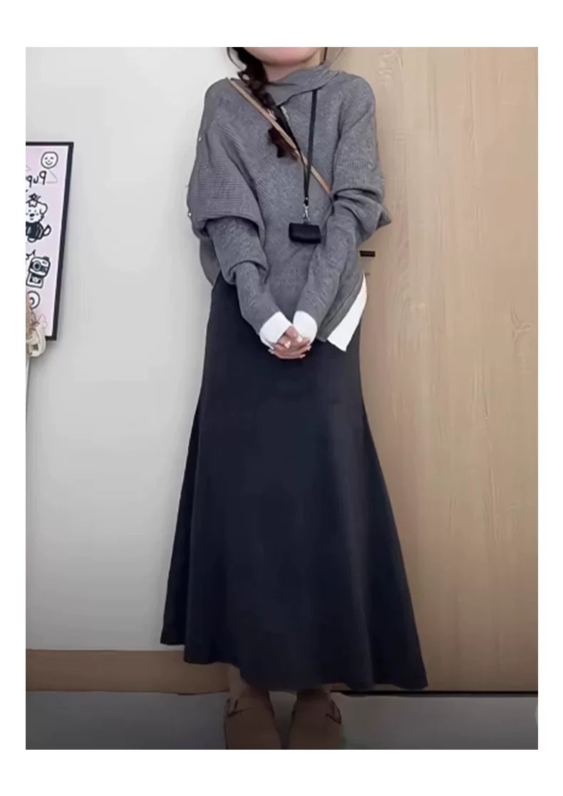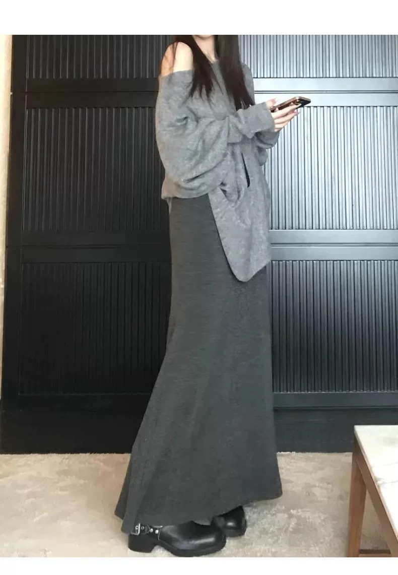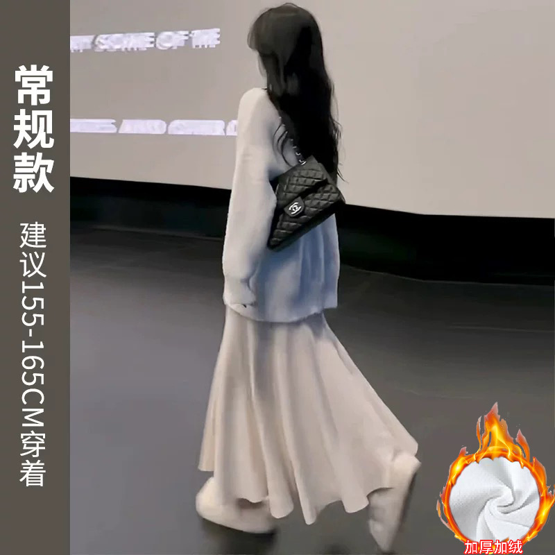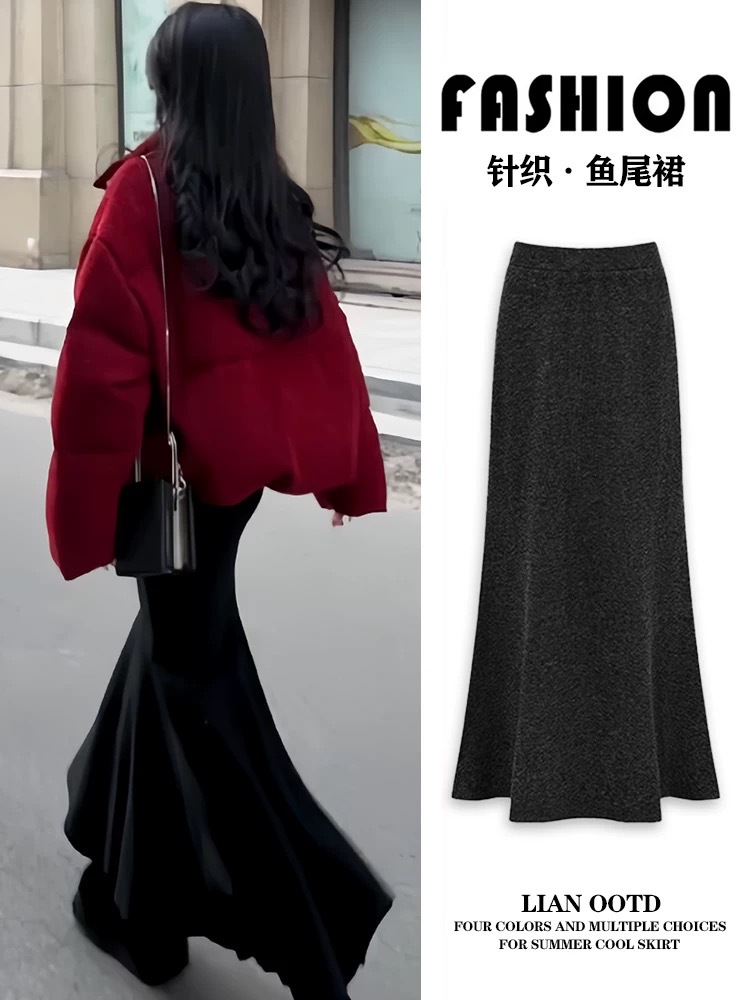 Вязаная юбка «рыбий хвост» для женщин, осень и зима 2024, новая тонкая, нежная, элегантная, высококачественная, удлиненная белая юбка, облегающая бедра