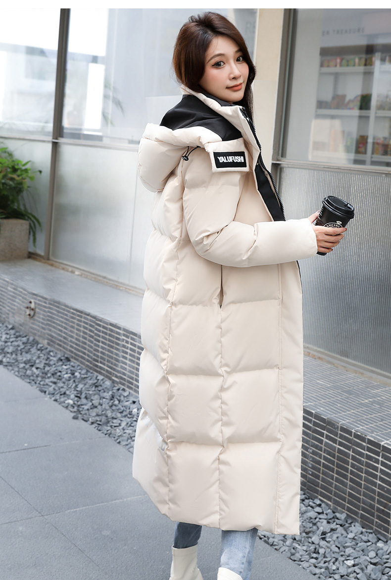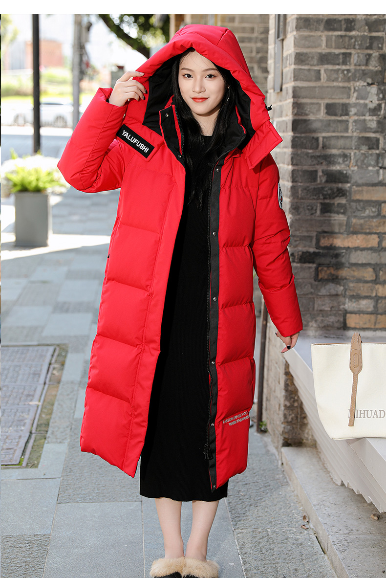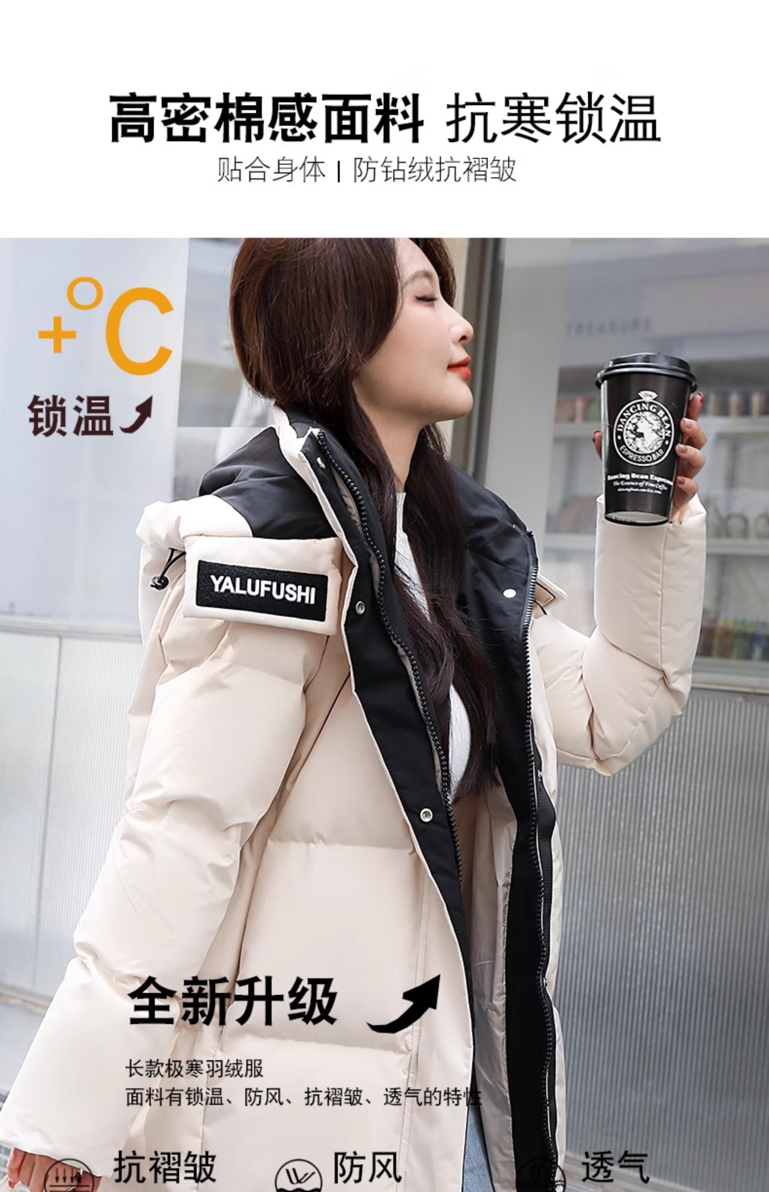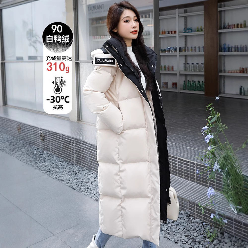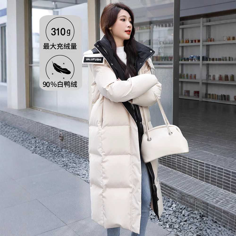 Аутентичная белая пуховая куртка для женщин из северо-восточного региона, супертолстая, длинная, облегающая, до колен, зимняя, новая куртка средней длины 2025 года.