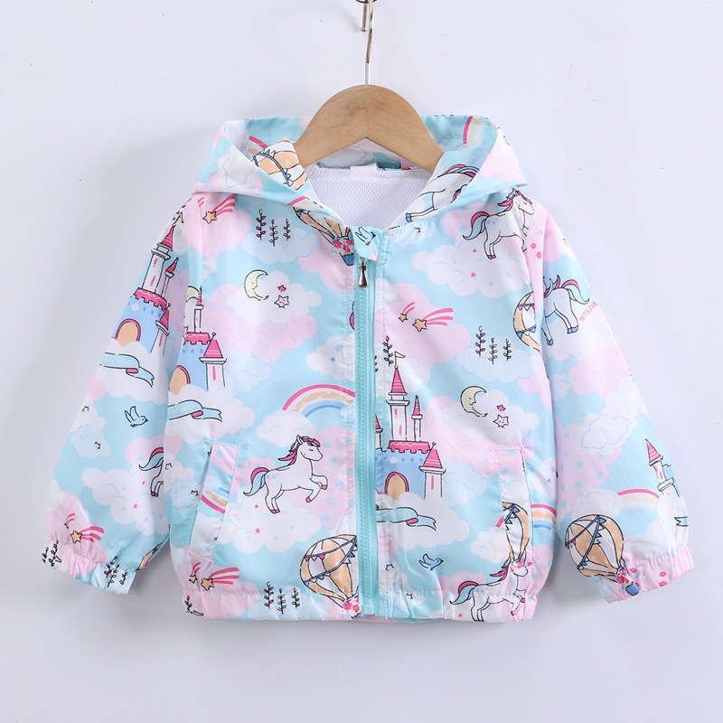 Корейская версия детской куртки весна и осень новая детская полная печать мультяшная куртка единорога для девочек куртка кардиган для защиты от ветра