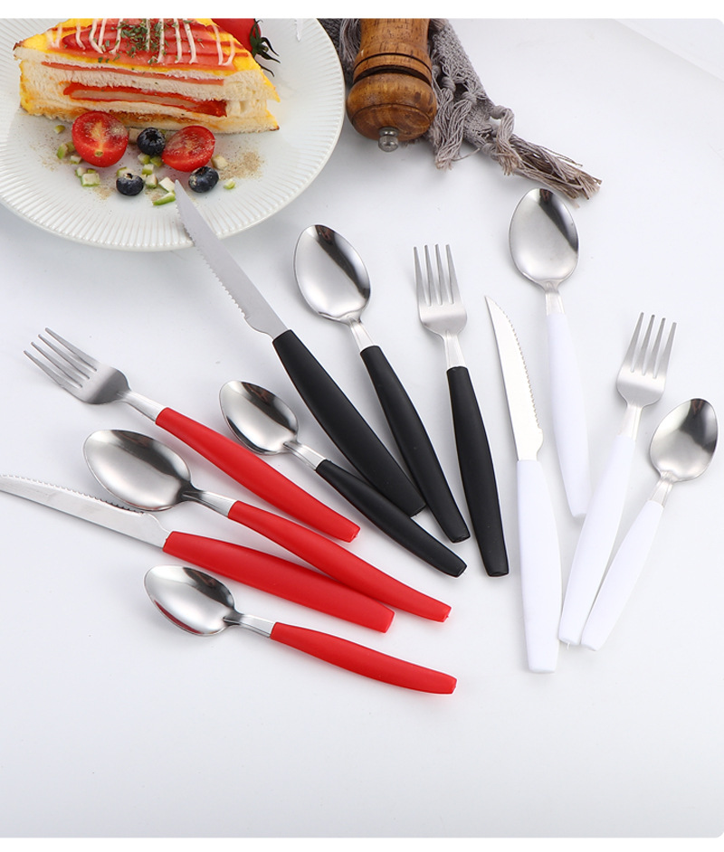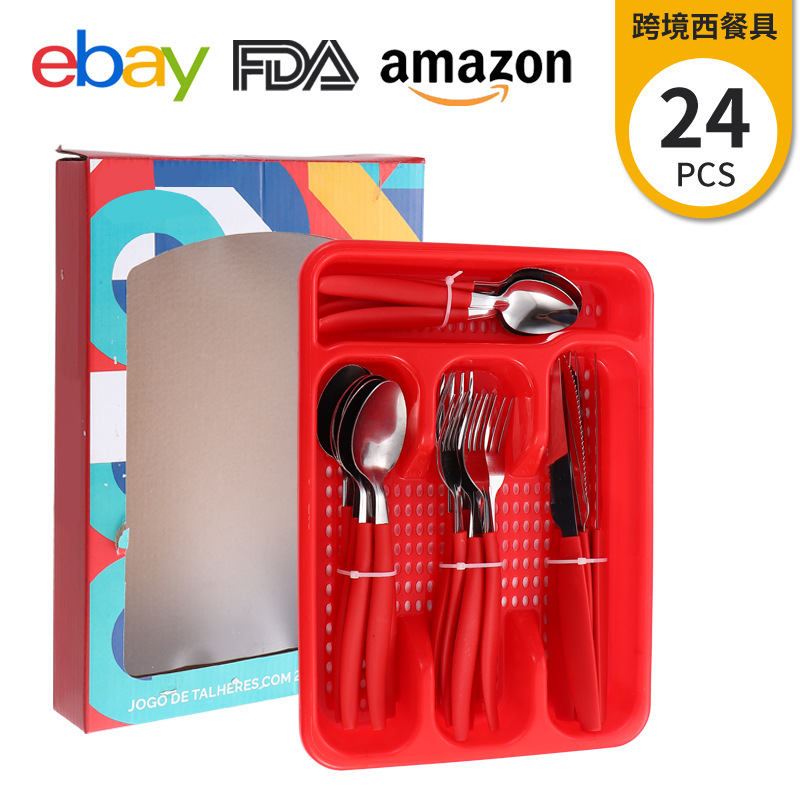 Внешняя торговля экспорт бразильской посуды 24PCS ножи вилка ложка набор хвостовой ручки из нержавеющей стали посуда простой чистый цвет набор
