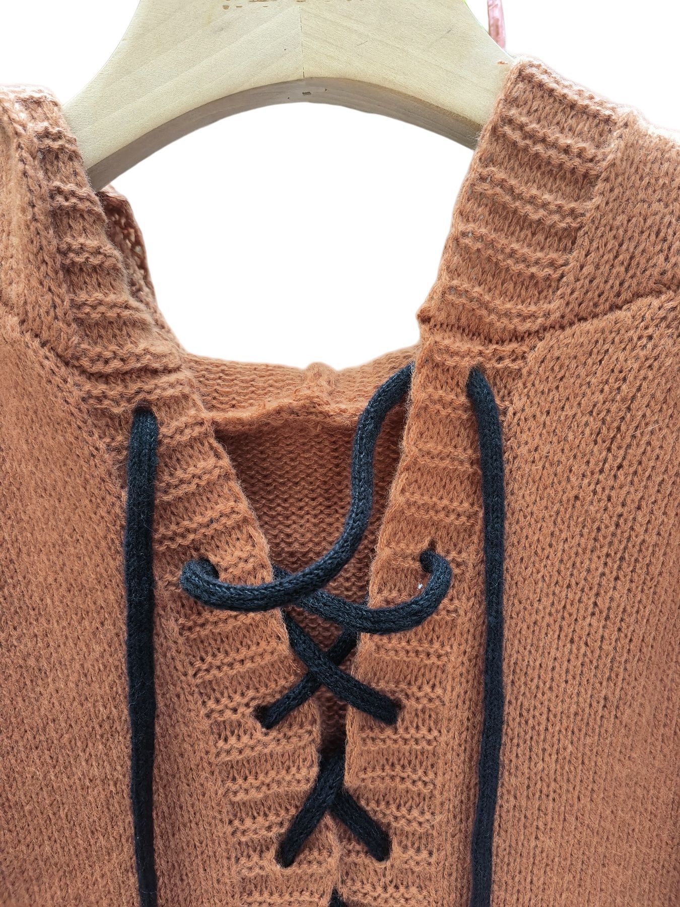 Европейская и американская амазонка осень-зима ретро с капюшоном моды сплошной цвет длинный рукав пуловер больших размеров женский свитер