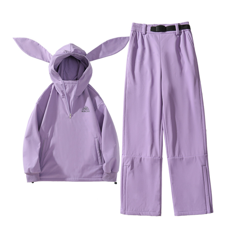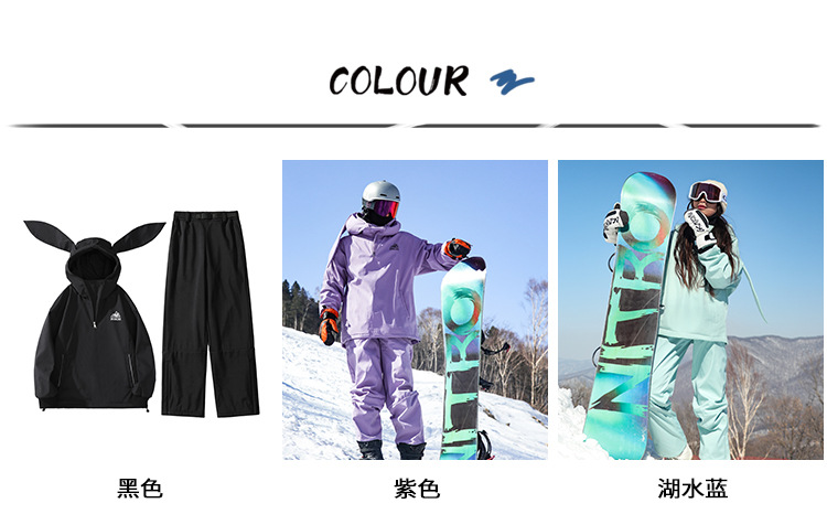 Лыжный курорт Аренда Оптовая зимняя ветрозащитная теплая водонепроницаемая кроличья уха серебряная лисица бархатная лыжная одежда для мужчин и женщин