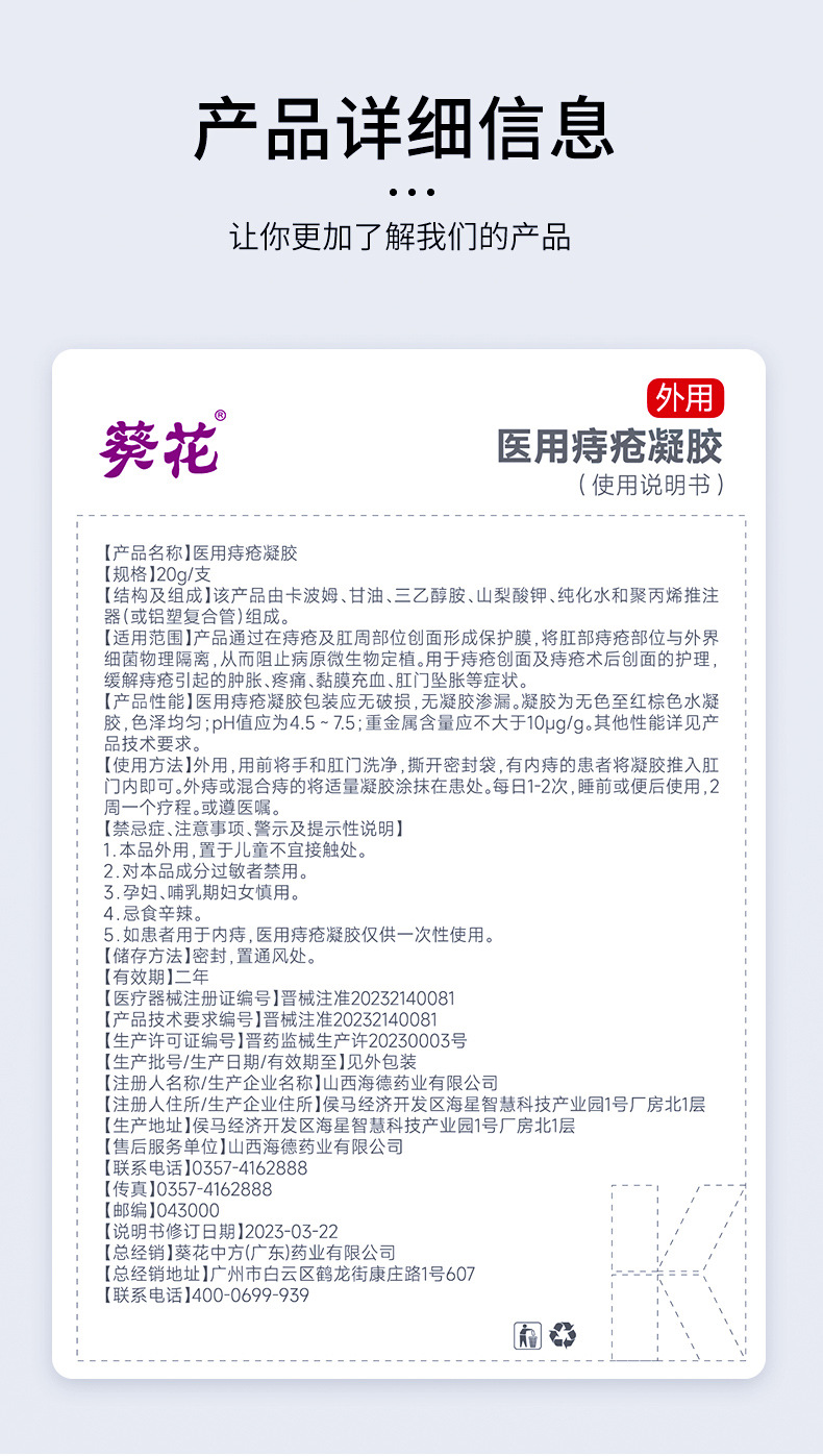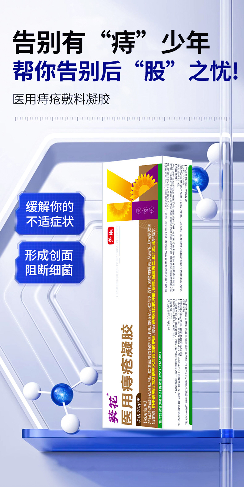 Подсолнечник медицинский гель для геморроя Повязка анальный зуд боль отек внутренней геморроидальной слизистой оболочки застой