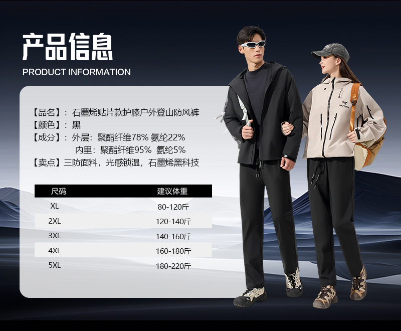 Шесть анти-альпинистских брюк пара черное золото для хранения тепла