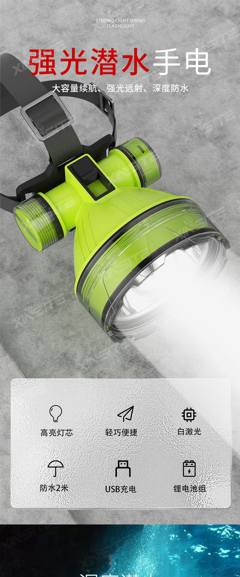 Погружной фары с сильным освещением зарядка светодиодный сверхяркий водонепроницаемый дальномерный фонарик для подводного сверхдлинного времени автономной работы