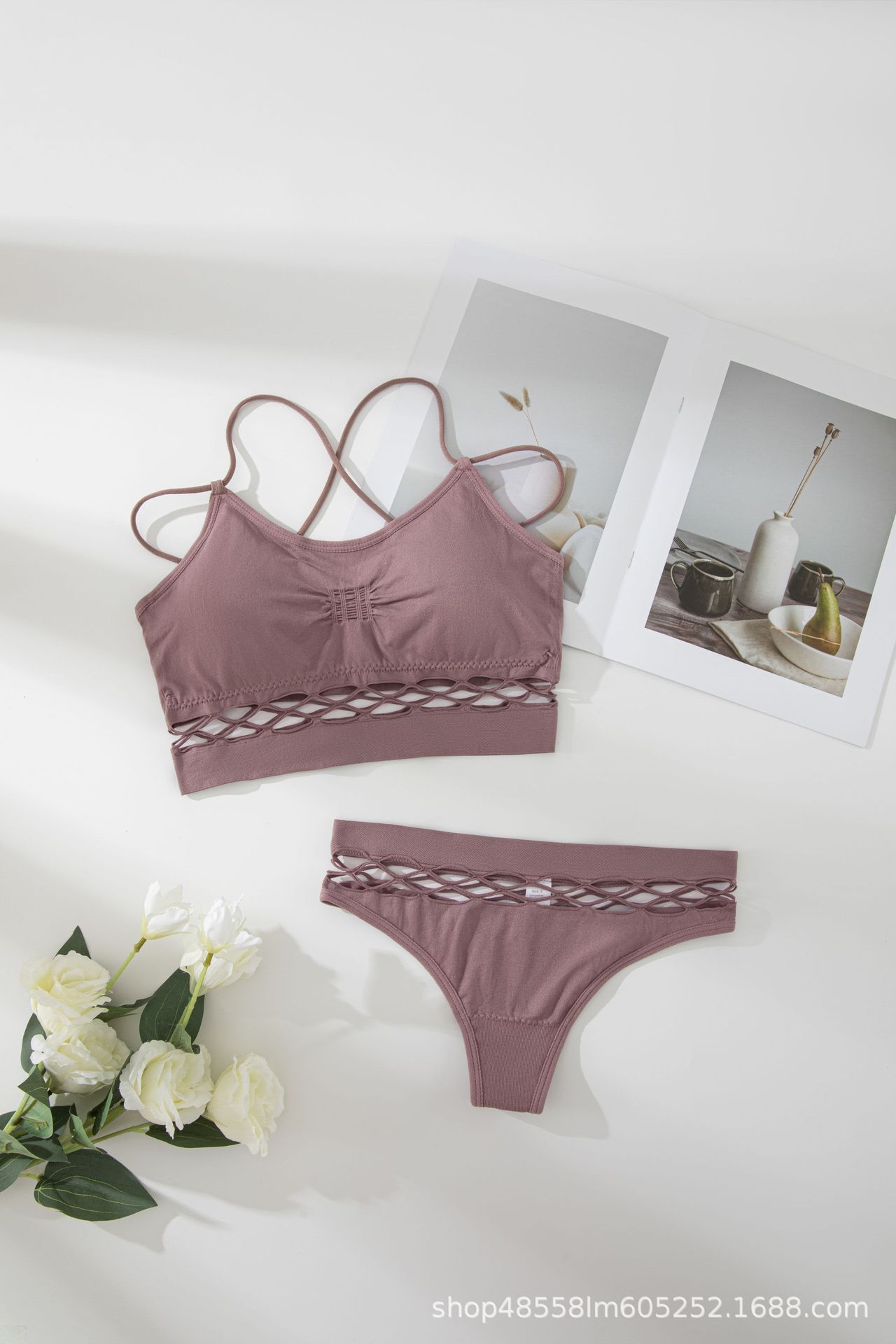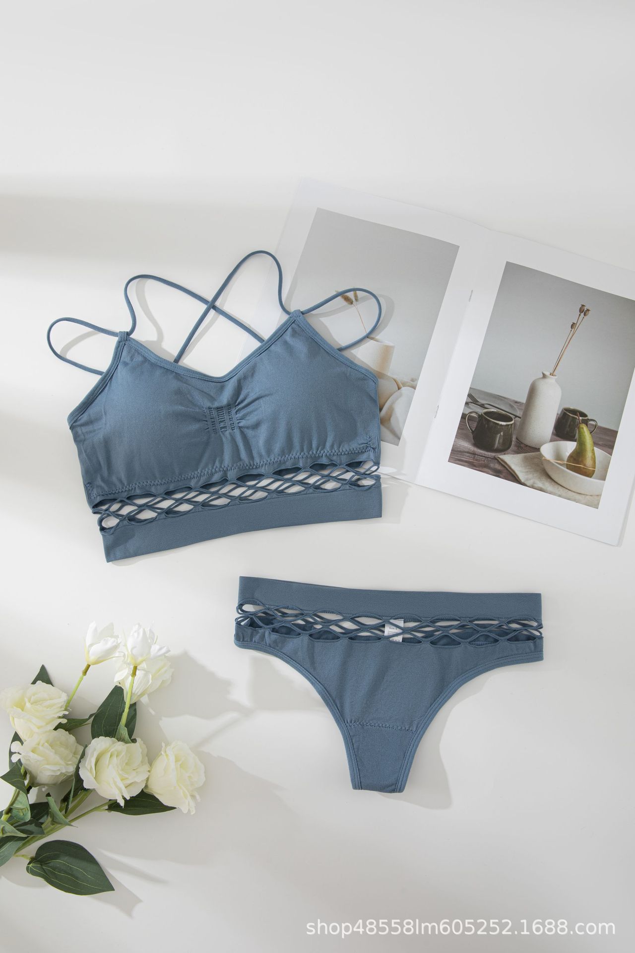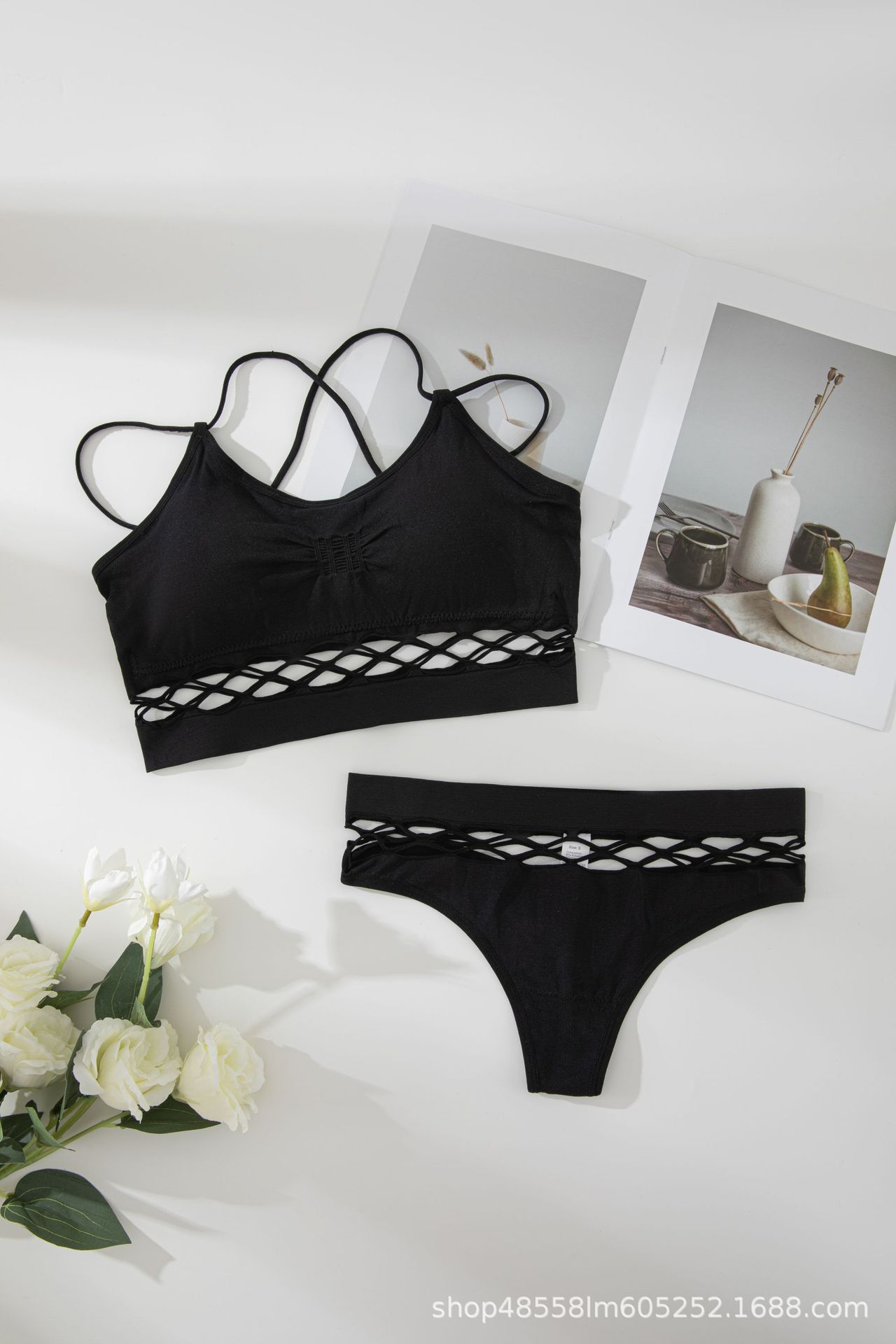 Трансграничный европейский и американский французский сексуальный бюстгальтер набор из полого нижнего белья трусы скрестить маленький жилет Amazon