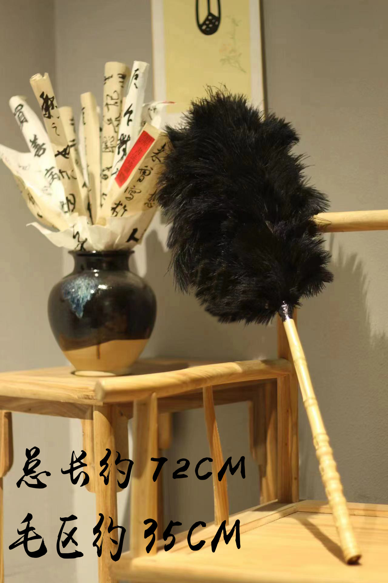 Тряпка из страусиных перьев с черной ручкой [длина около 65 см]; Римская ручка 35см.; Большой бук 50см.; Телескопическая стойка 100см.; Пластик телескопический 40см.; Удлиненный бамбук 60см.; Древесина среднего размера 42см.; Телескопический карбоновый столб 68см.; Маленькая массив дерева 30см.
