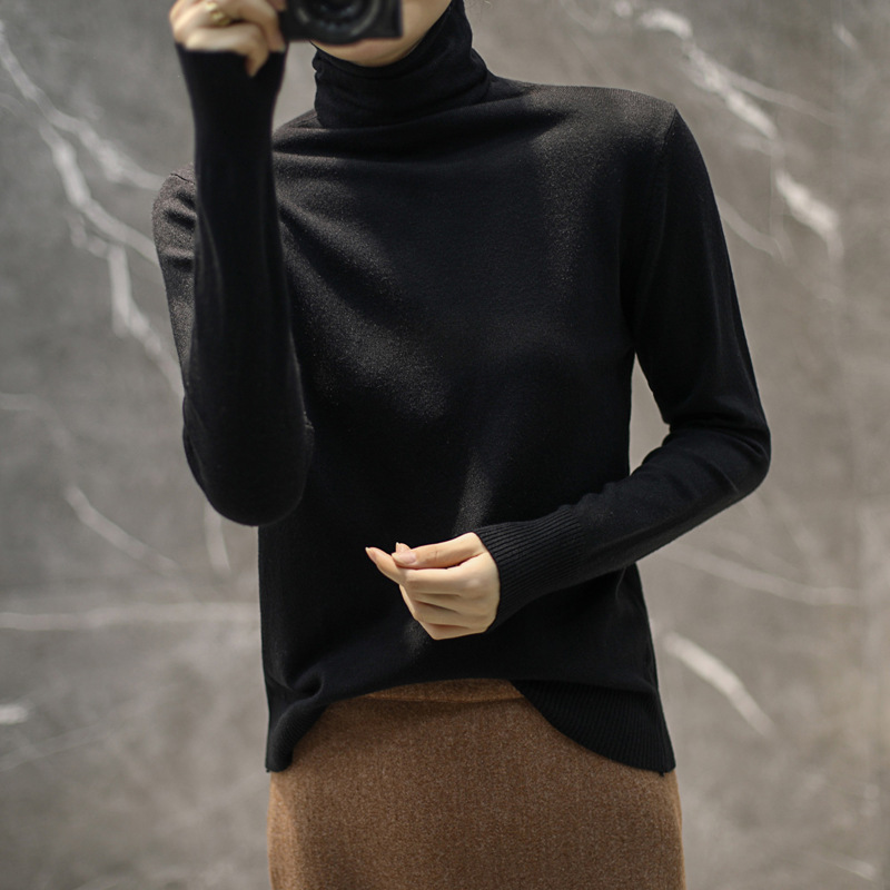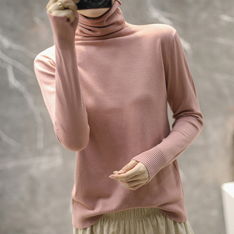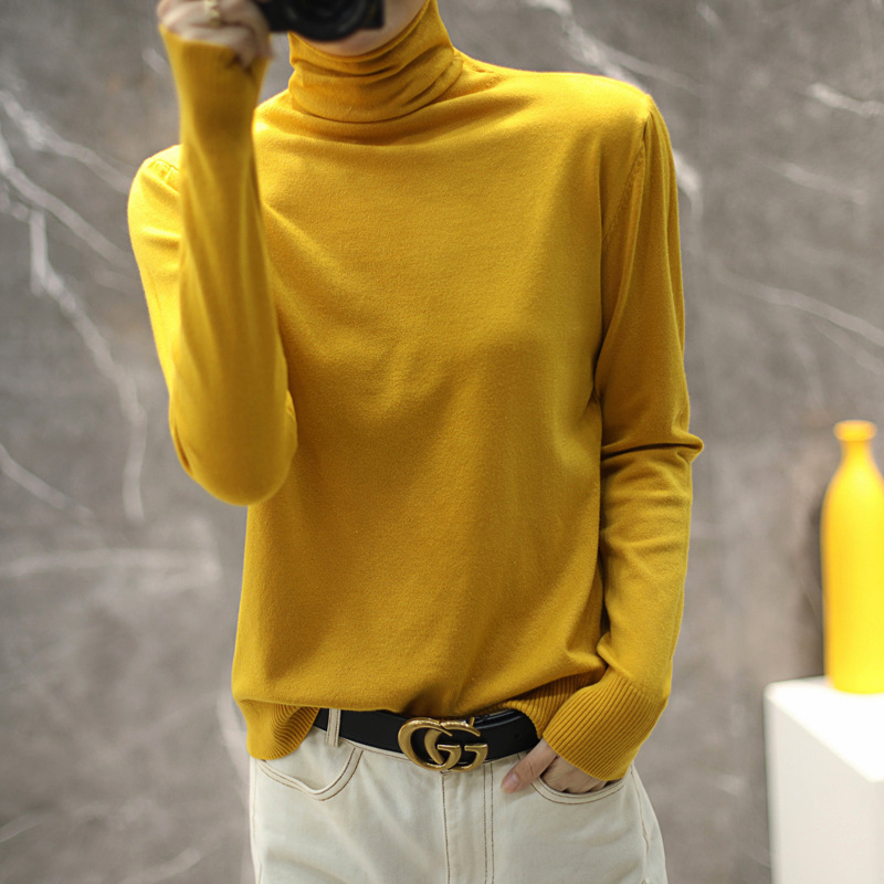 Оптовая продажа свитер с воротником осенью и зимой новый свитер женский пуловер сплошной цвет нижний свитер с длинными рукавами