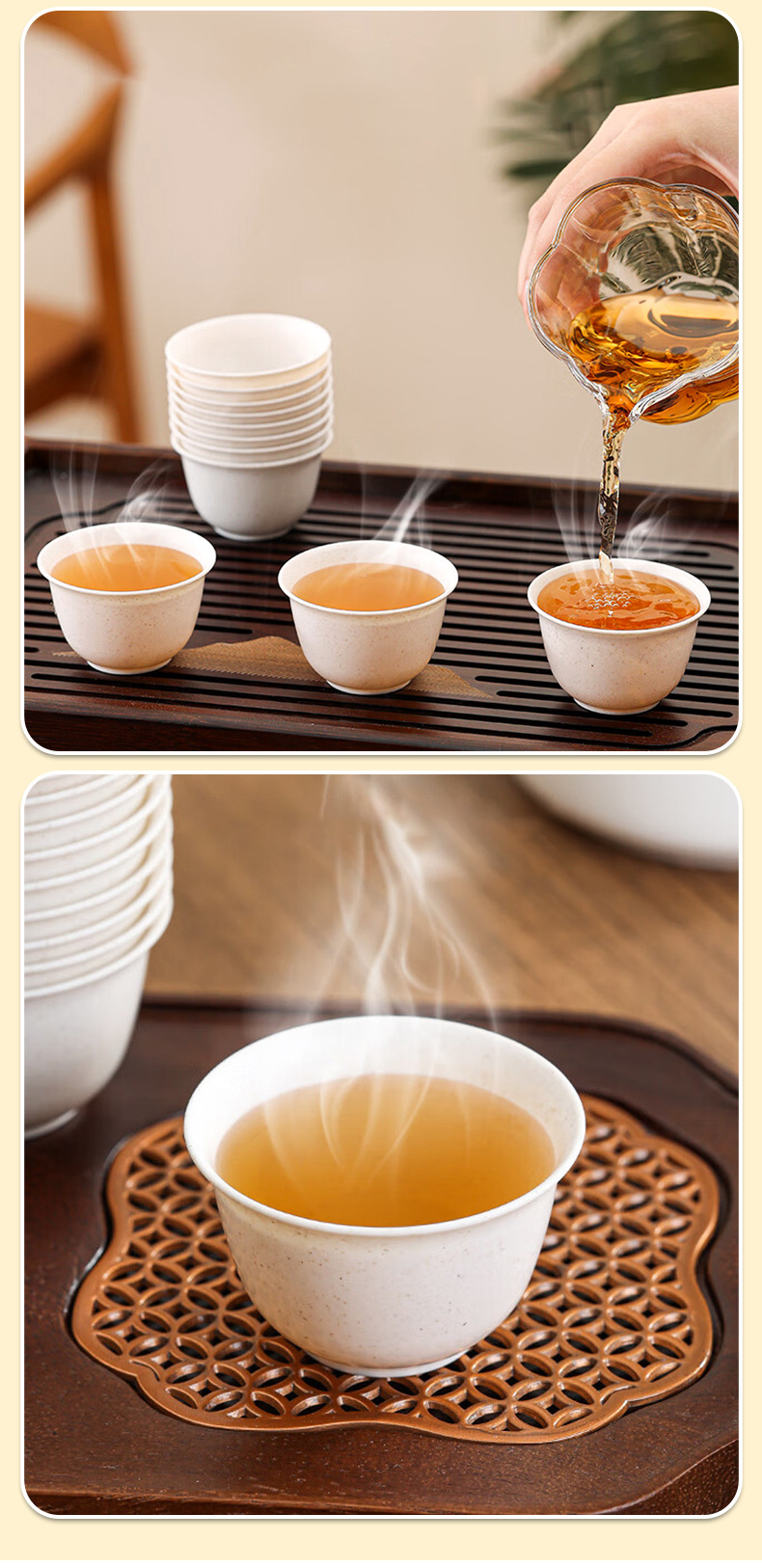 Чайные чашки из рисовой шелухи 60 мл, 120 шт.; Чайные чашки из рисовой шелухи 60 мл, 240 шт.; Чашка чая из рисовой шелухи 60 мл, 360 шт.; Чашка чая из рисовой шелухи 60 мл, 1000 шт.; Чашка чая из белой рисовой шелухи 100 мл - 120 шт.; 50 чайных чашек из рисовой шелухи-бочка; 1 подстаканник для чая; Чайный набор для путешествий с рисовой шелухой, 1 коробка; Чайная чашка из рисовой шелухи, дорожный набор, 2 коробки