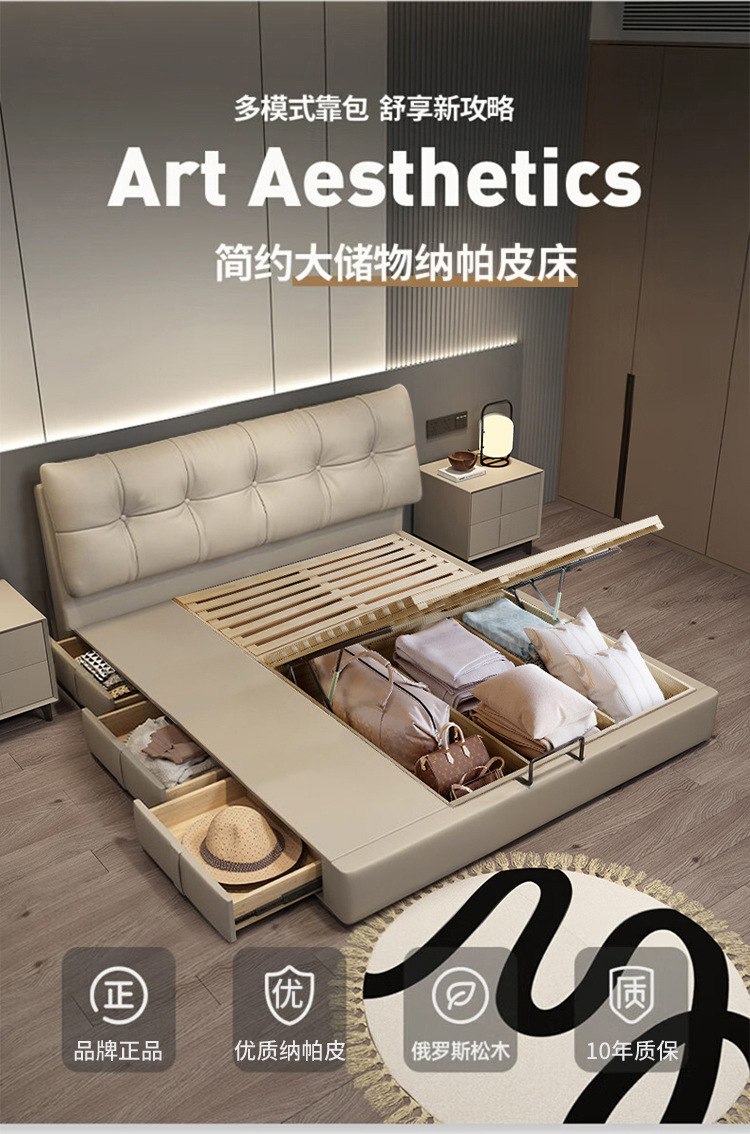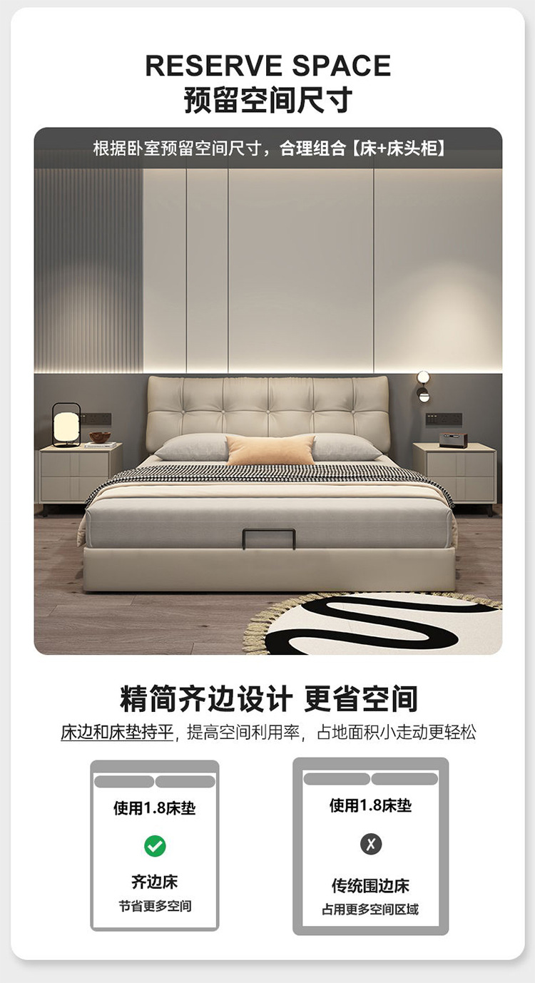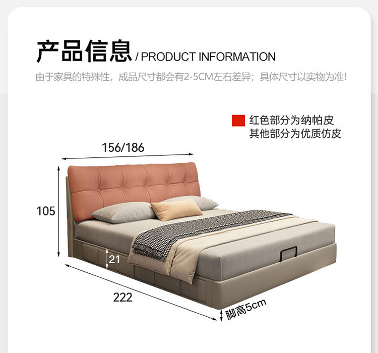 Современная минималистская 1,5 м кожаная кровать Nordic Легкая роскошная небольшая мягкая кровать 1.8 главная спальня двухместная минималистская кровать