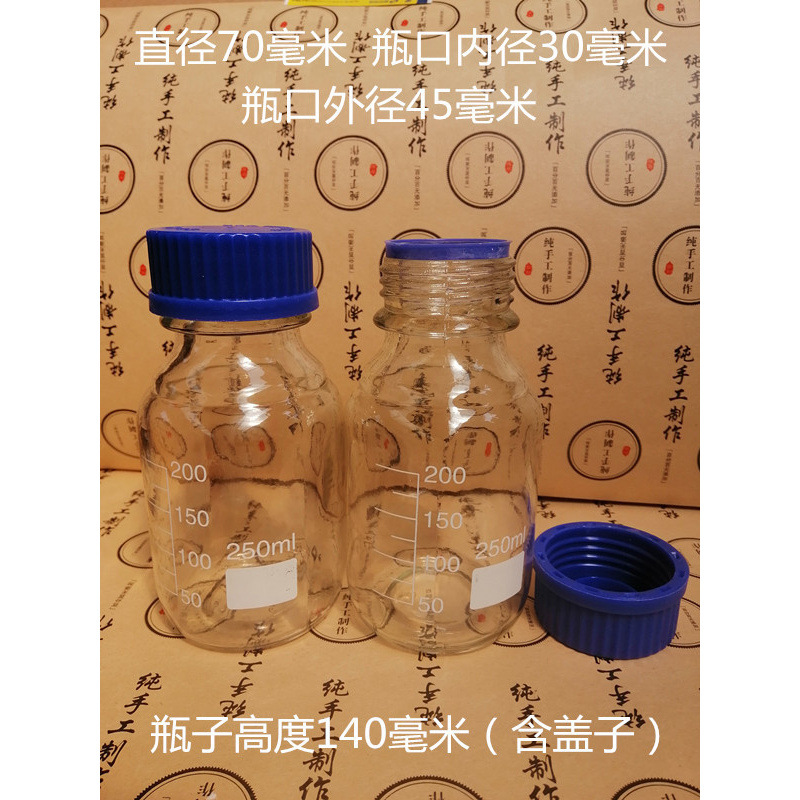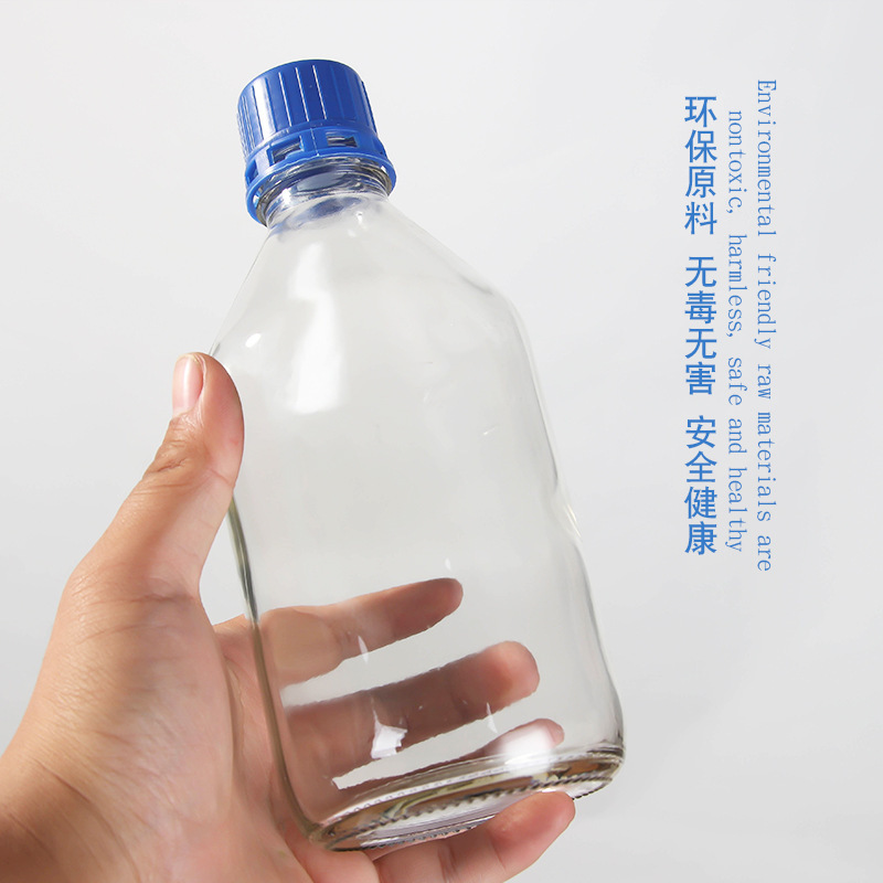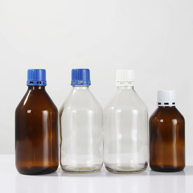 Синяя крышка вакуумная бутылка коричневый лабораторный образец бутылка стеклянная бутылка экспериментальная бутылка винт герметичный химический реагент