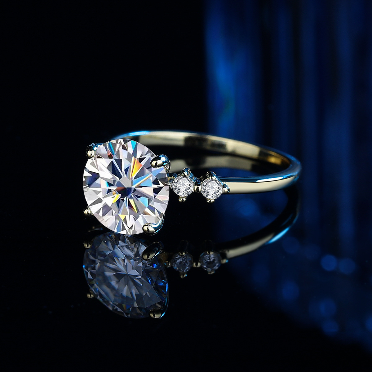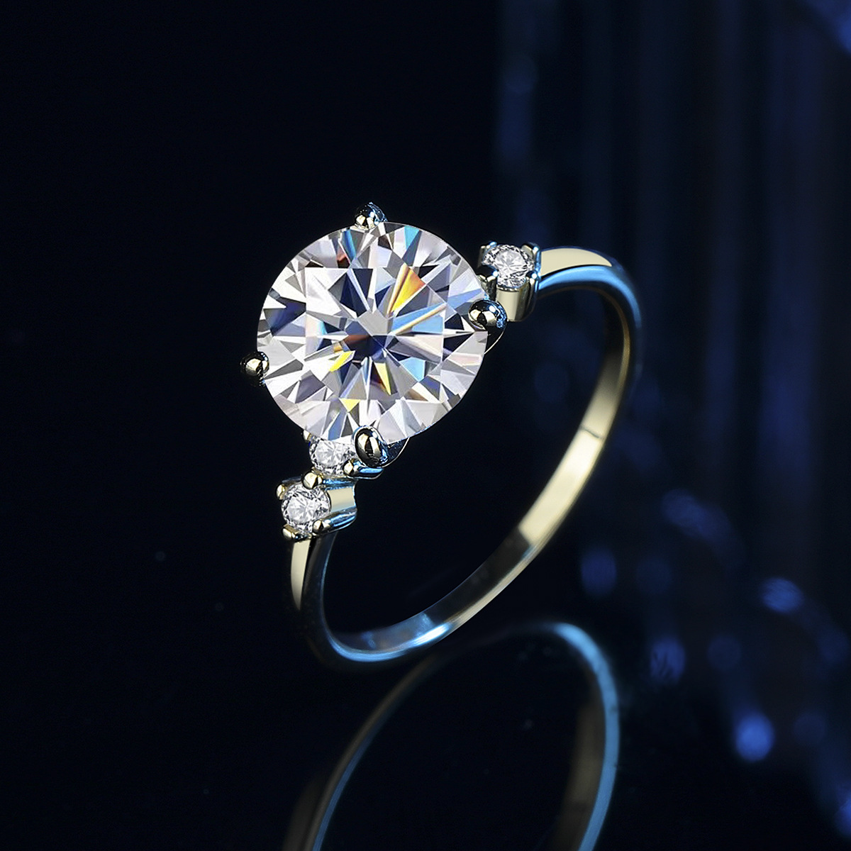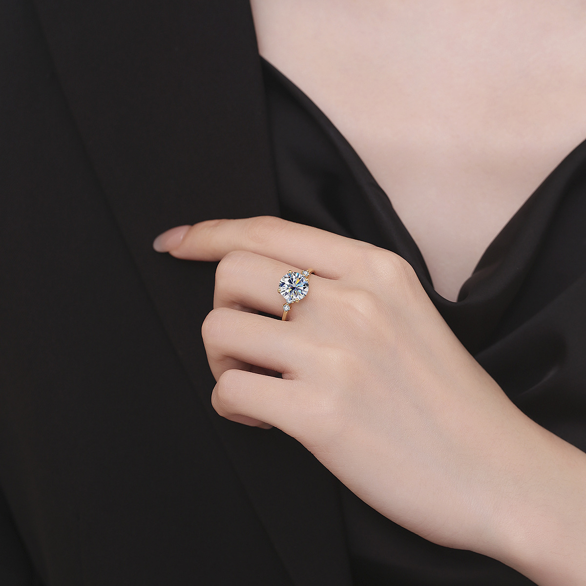 Трансграничная внешняя торговля новый продукт s925 стерлингового серебра Мозамбик каменное кольцо женское чувство высокого класса Европа и США 18K желтый 3 карат бриллиантовое кольцо оптом