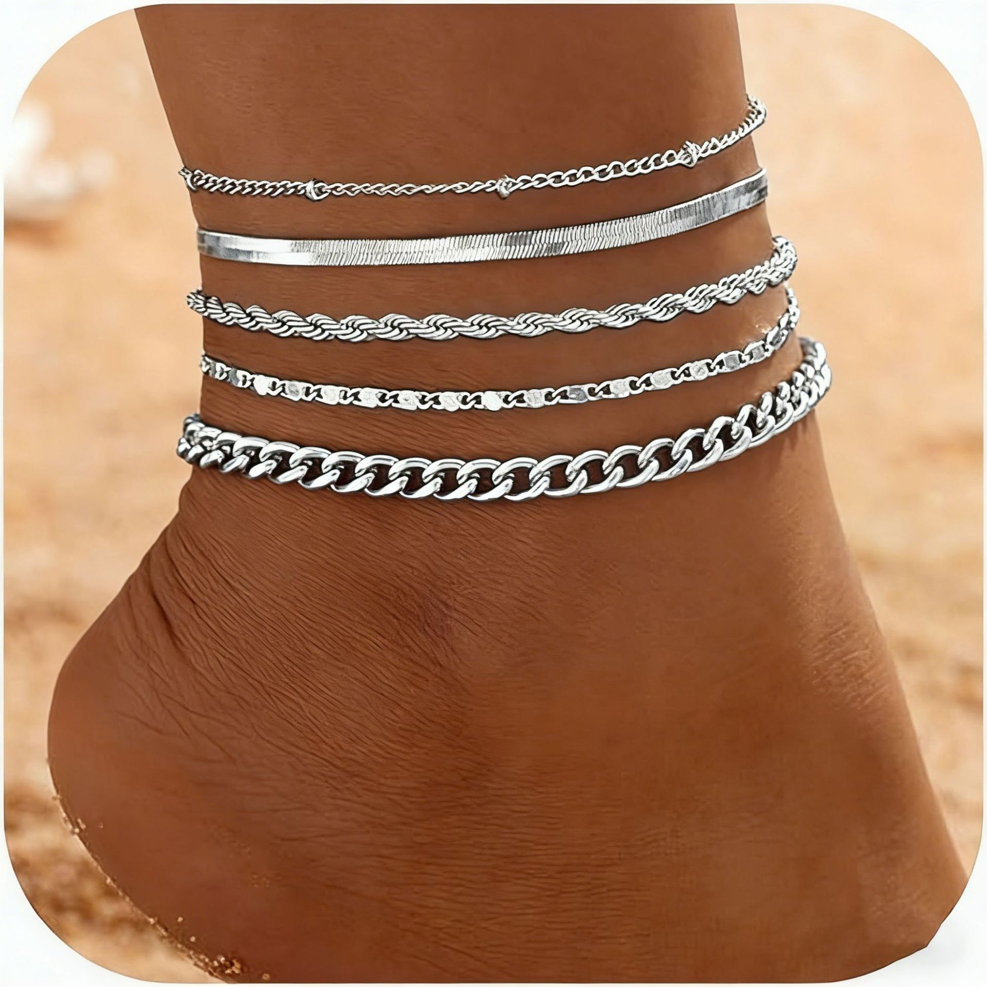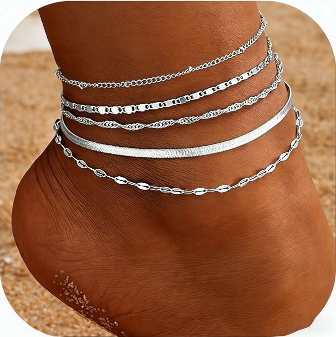 Европейский и американский трансграничный богемный стиль сплющенные цепи змеи цепь из трех частей женский летний пляж многослойный набор ножных браслетов