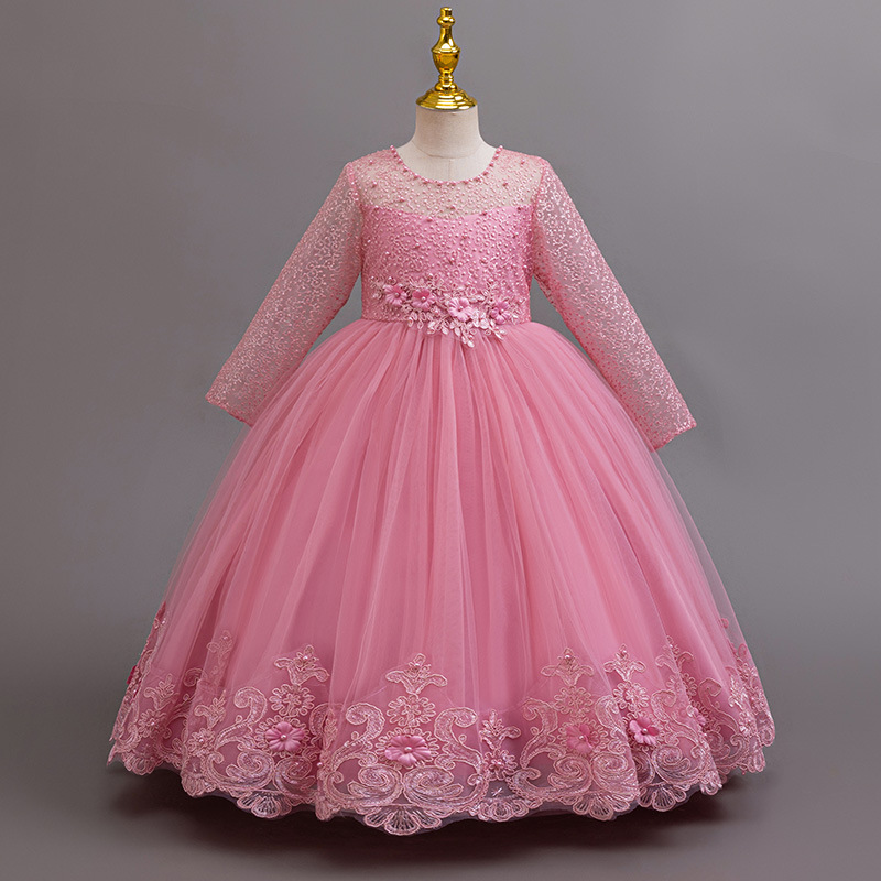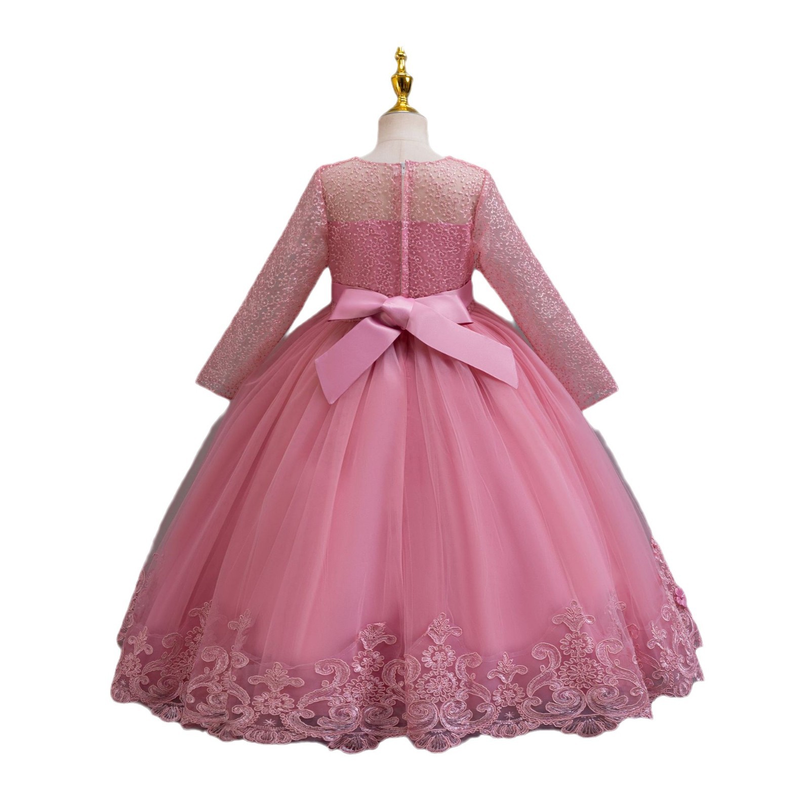Новый стиль пятно с длинными рукавами кружева детское платье свадебное платье принцессы девушка цветочница день рождения платье kids dress