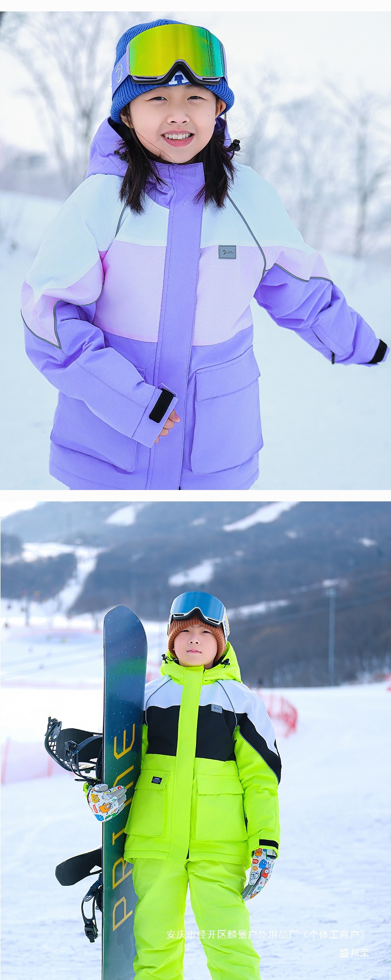 Детская горнолыжная одежда для мальчиков и девочек 2024 года, уличная экипировка, лыжная куртка, утолщенная, теплая, водонепроницаемая, ветрозащитная.