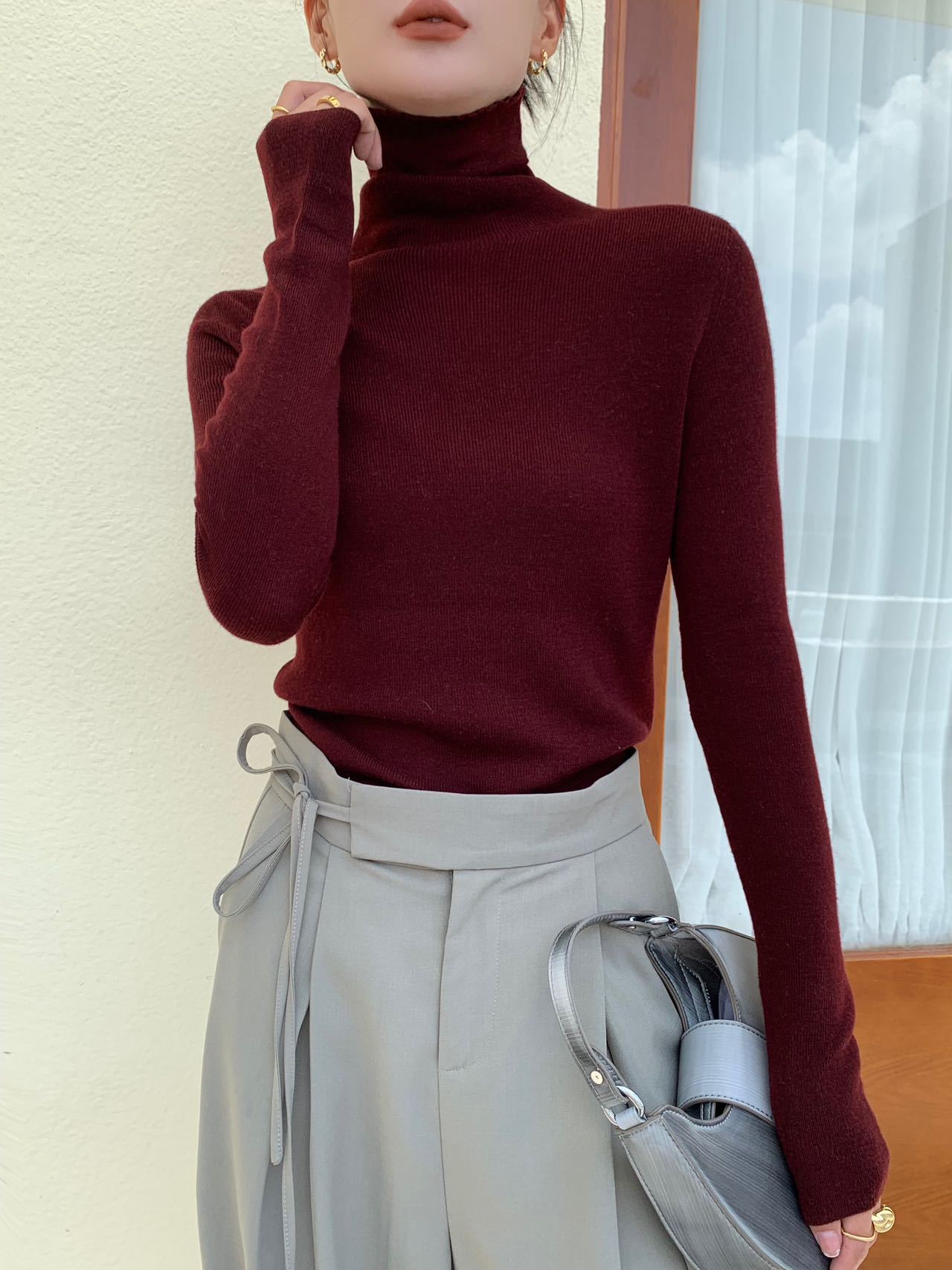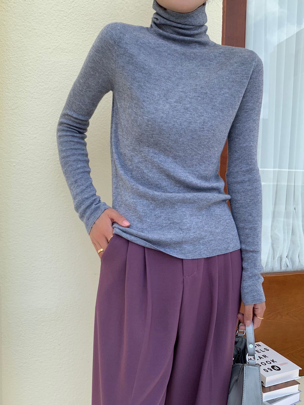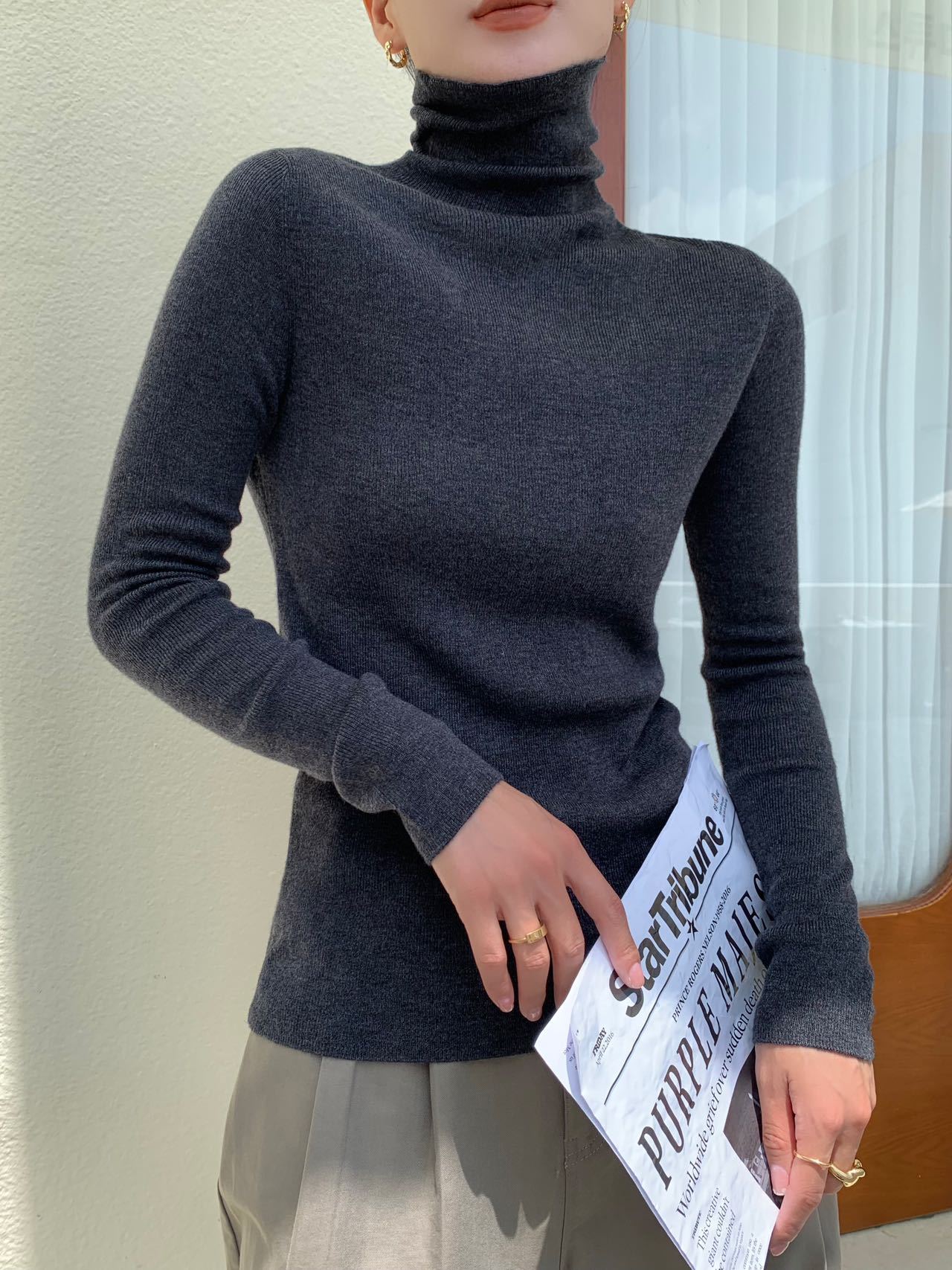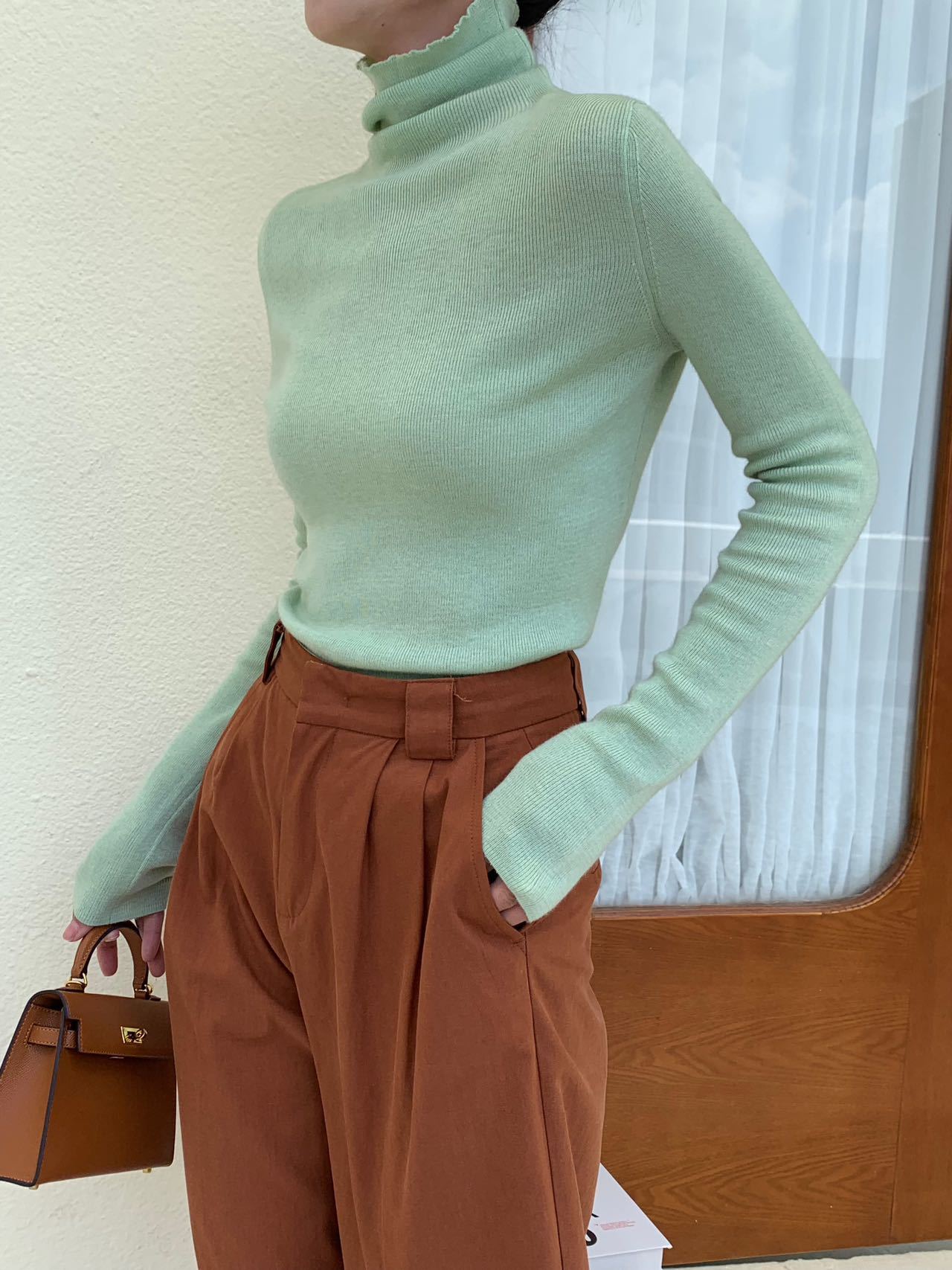Модный шерстяной свитер-пуловер с высоким воротником и стойкой горловиной, однотонный, в конфетных цветах, универсальный, базовая женская рубашка, хит продаж