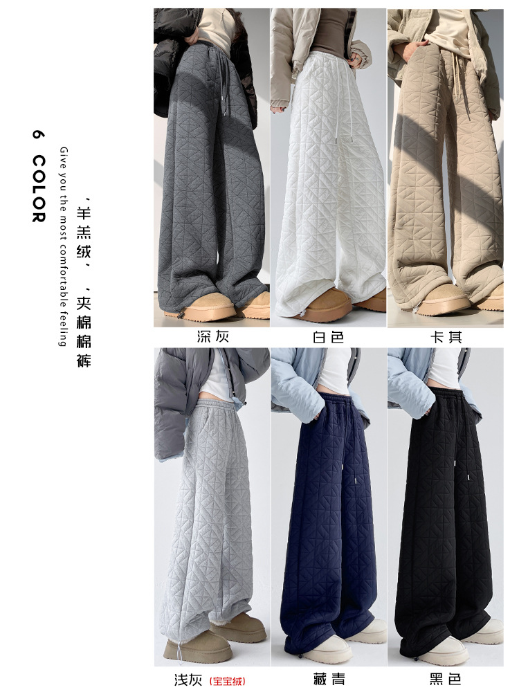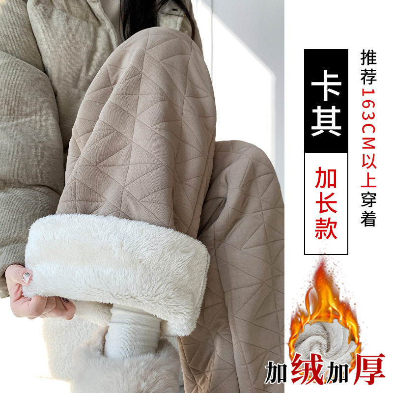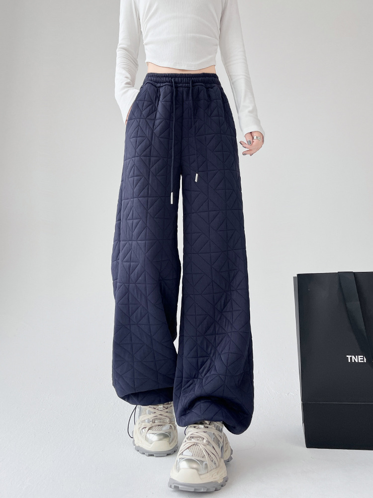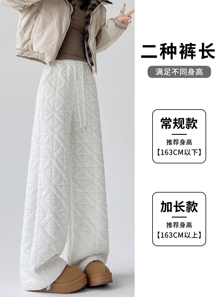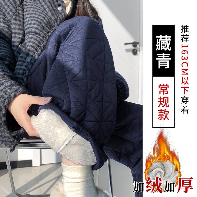 Женские широкие брюки с ромбовидным стежком, зимние, с высокой талией, утепленные флисом, утолщенные, теплые, повседневные, двусторонние, длинные брюки.