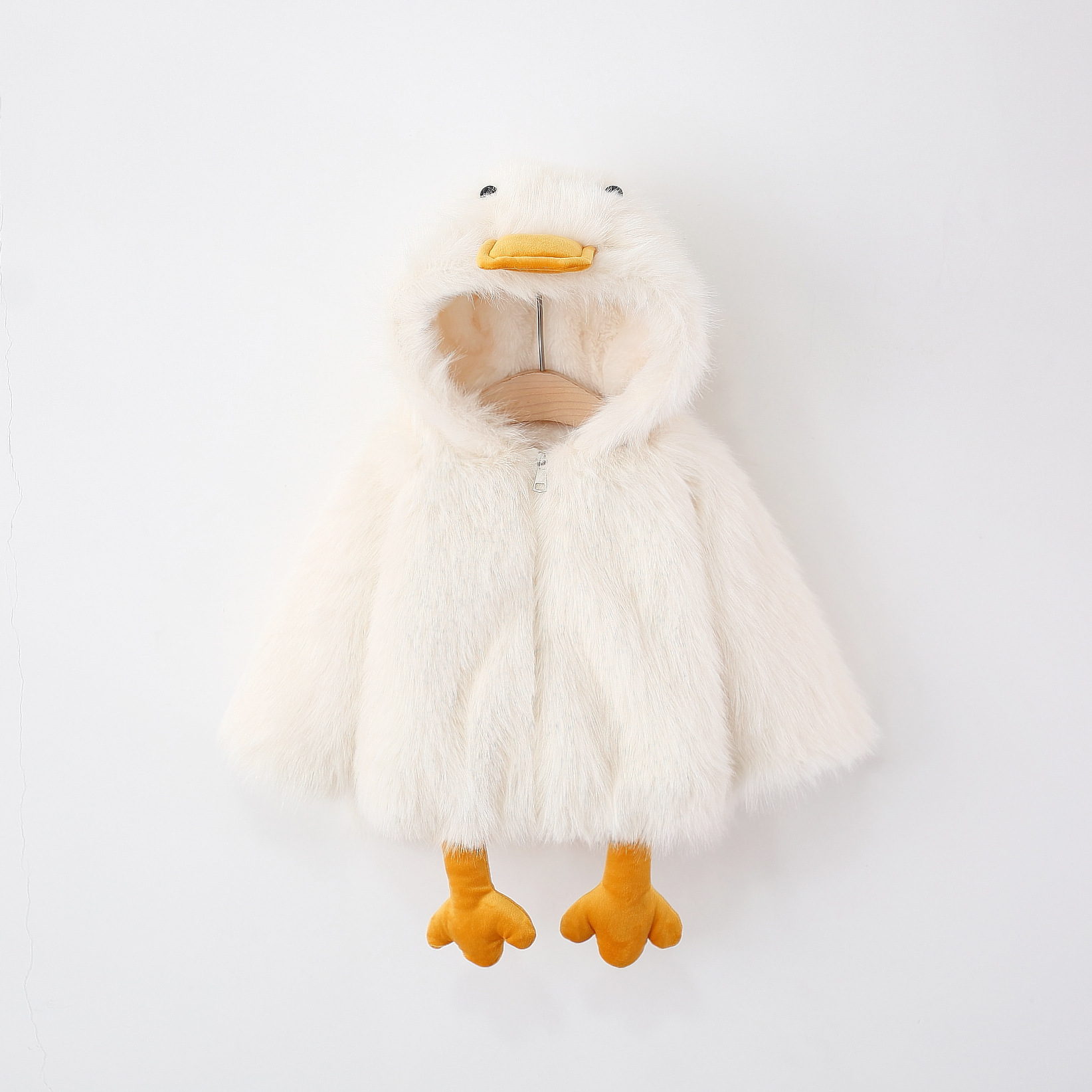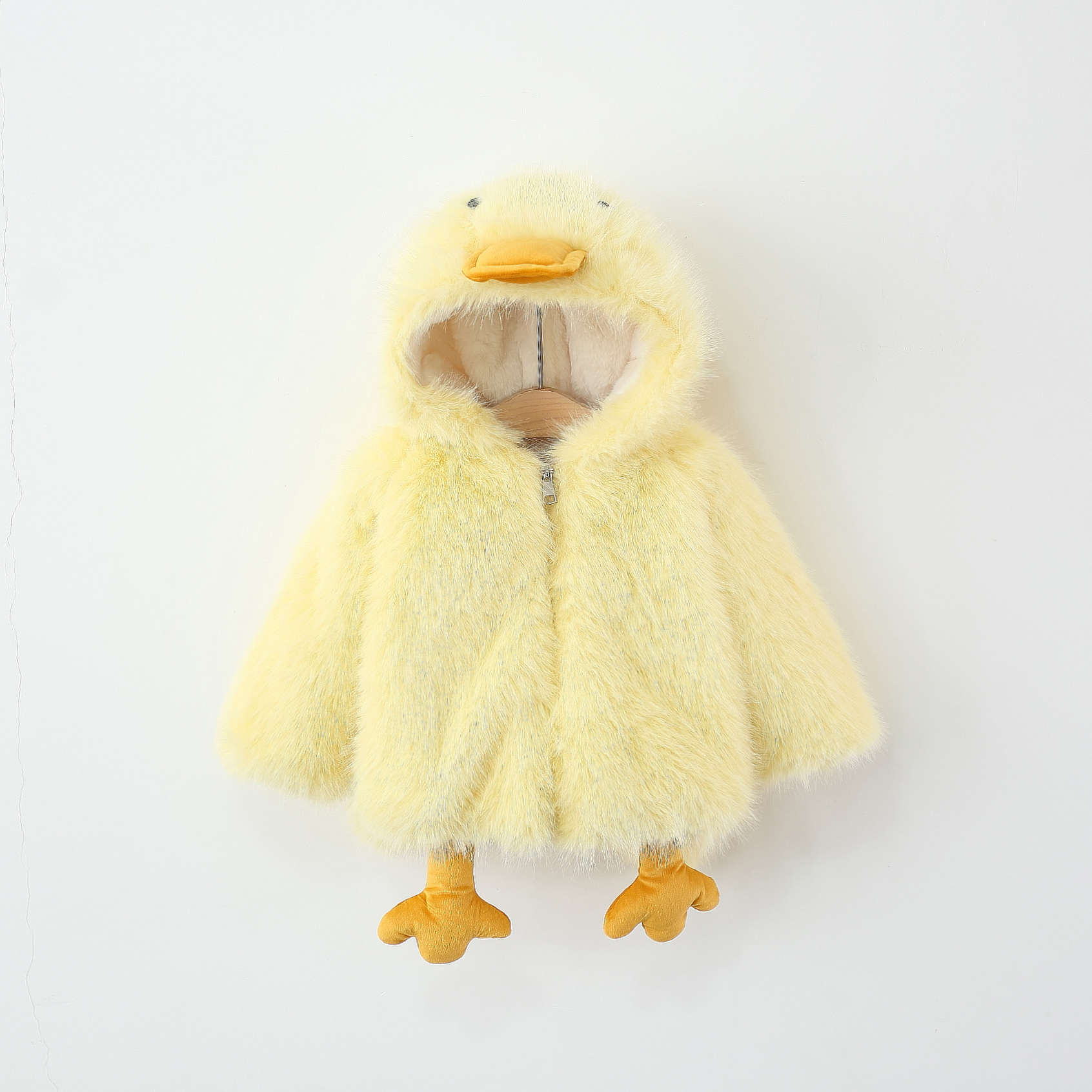 Зимнее детское пальто-свитер с капюшоном в виде маленькой уточки, 2025 года