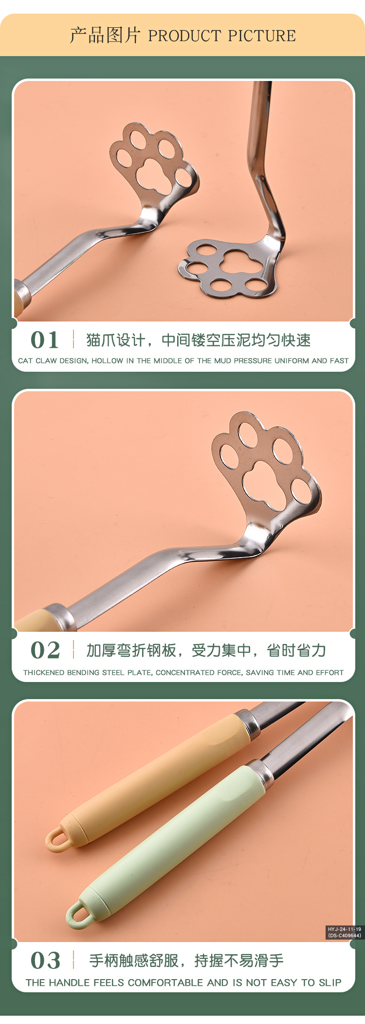 Источник прямых продаж завода PP ручка из нержавеющей стали картофельного прессования, кухонный инструмент многоцелевой работы, трансграничная электрическая торговля
