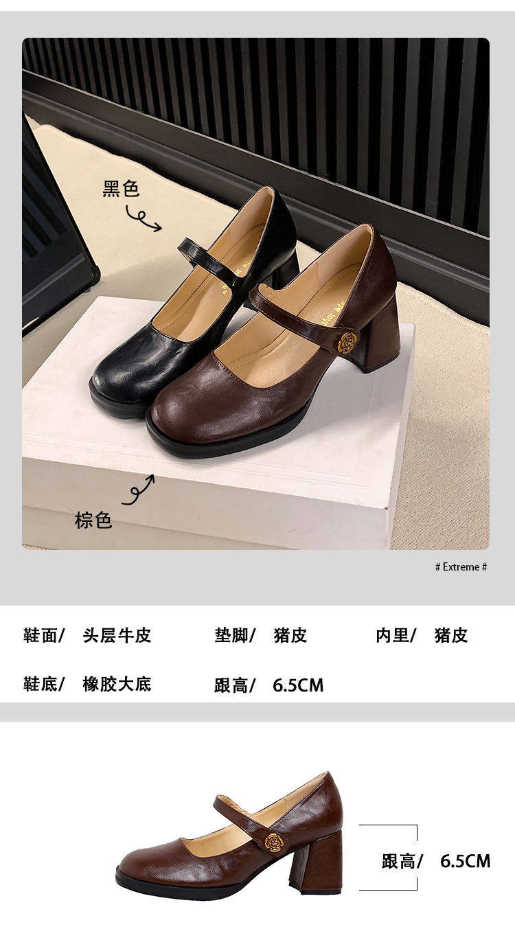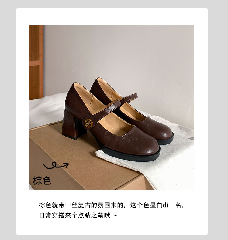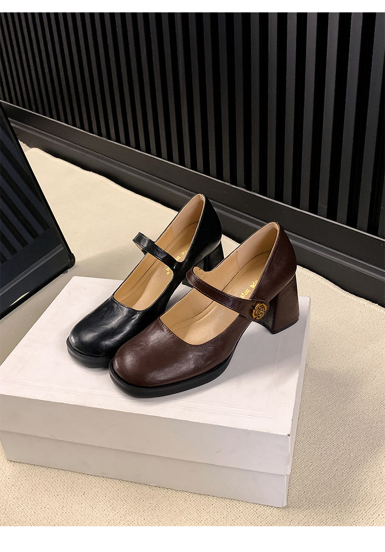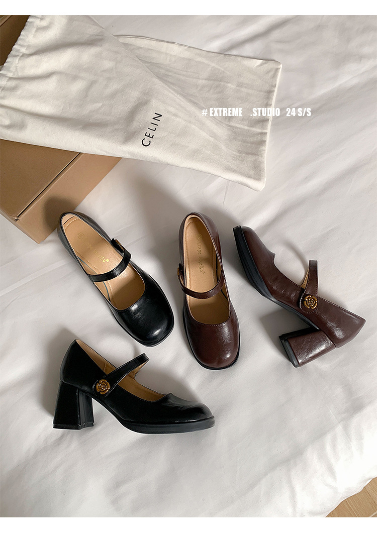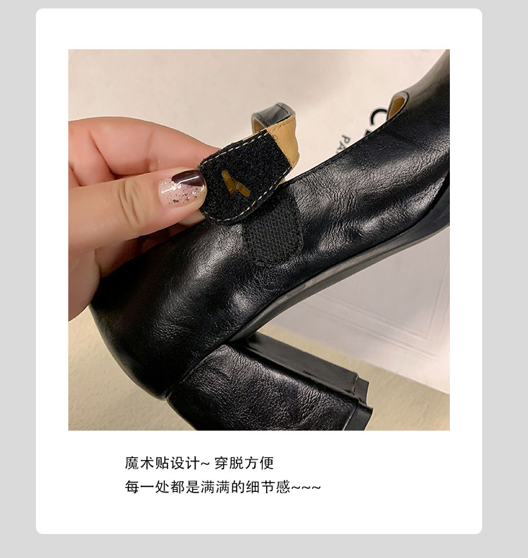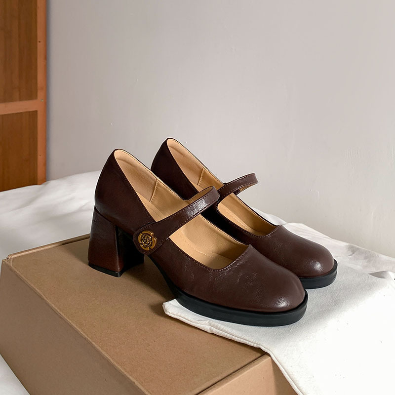 Коровья кожа версия ~ Кожаные французские туфли Мэри Джейн женский школьный стиль ретро квадратная голова пряжка, неглубокие туфли на высоком каблуке