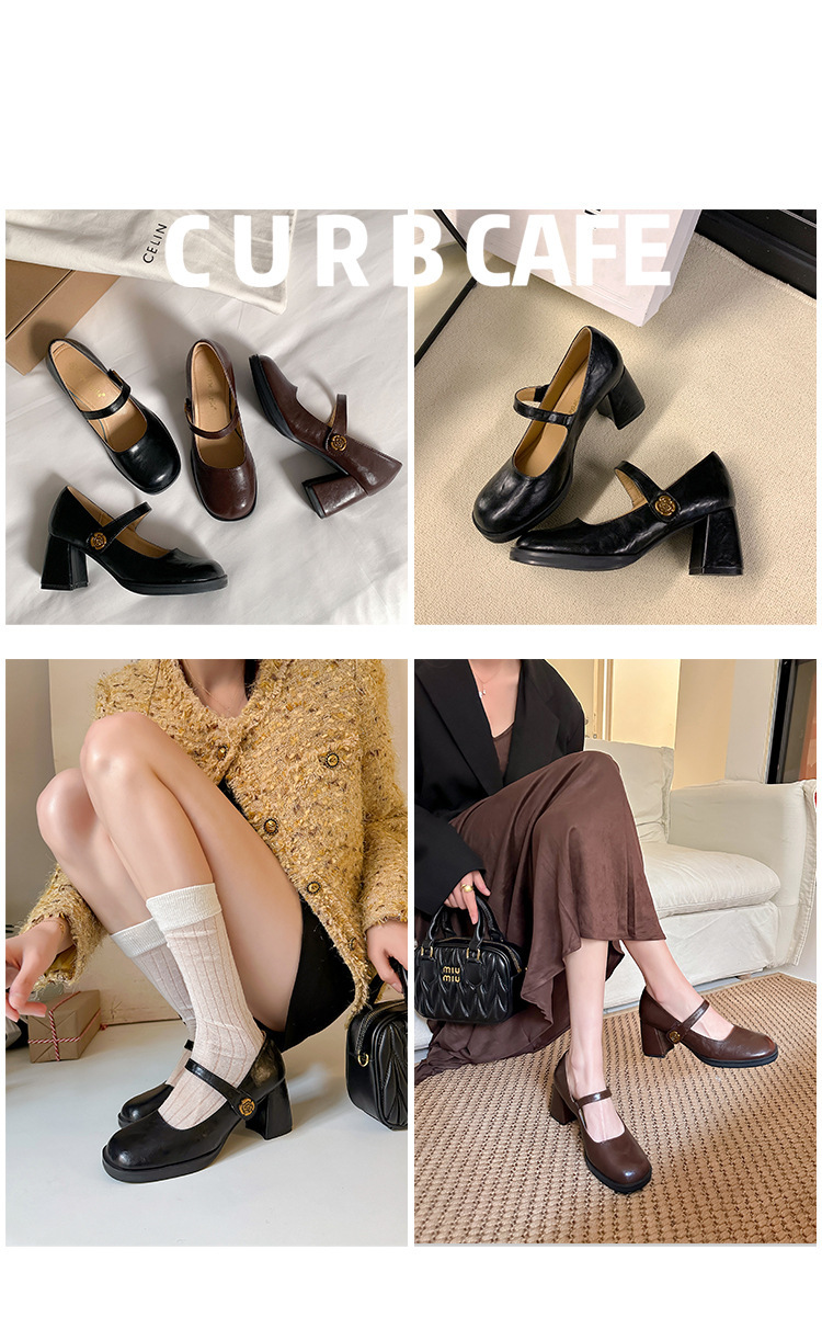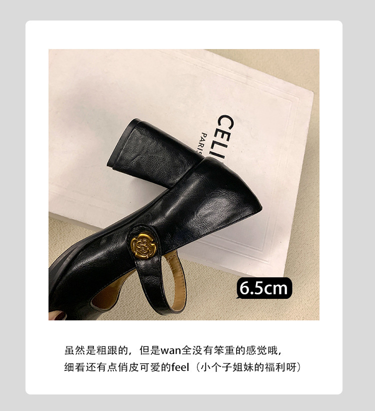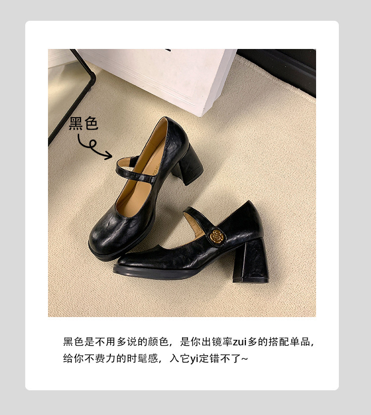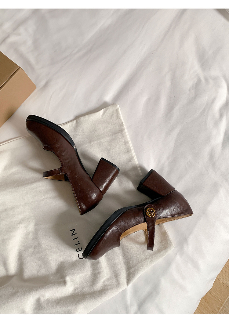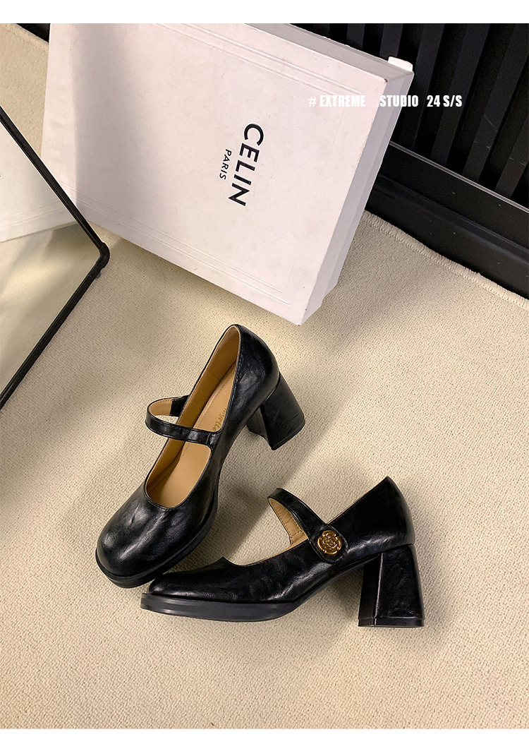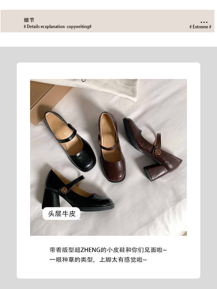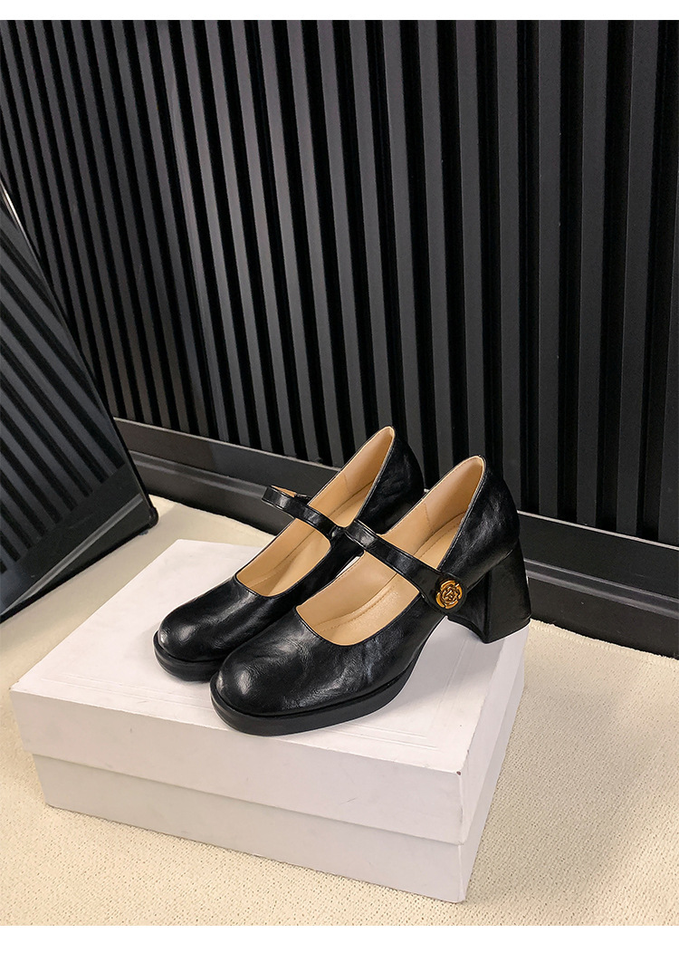 Коровья кожа версия ~ Кожаные французские туфли Мэри Джейн женский школьный стиль ретро квадратная голова пряжка, неглубокие туфли на высоком каблуке