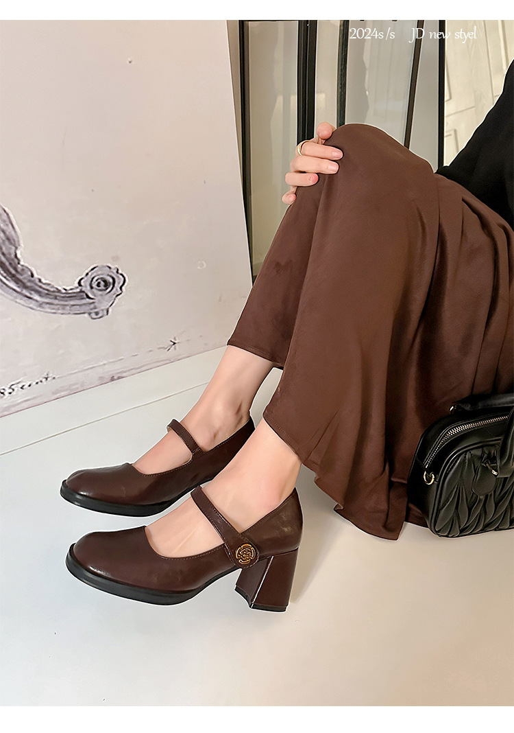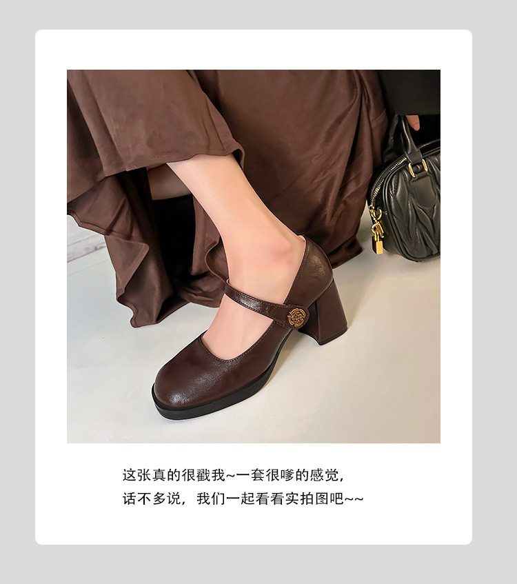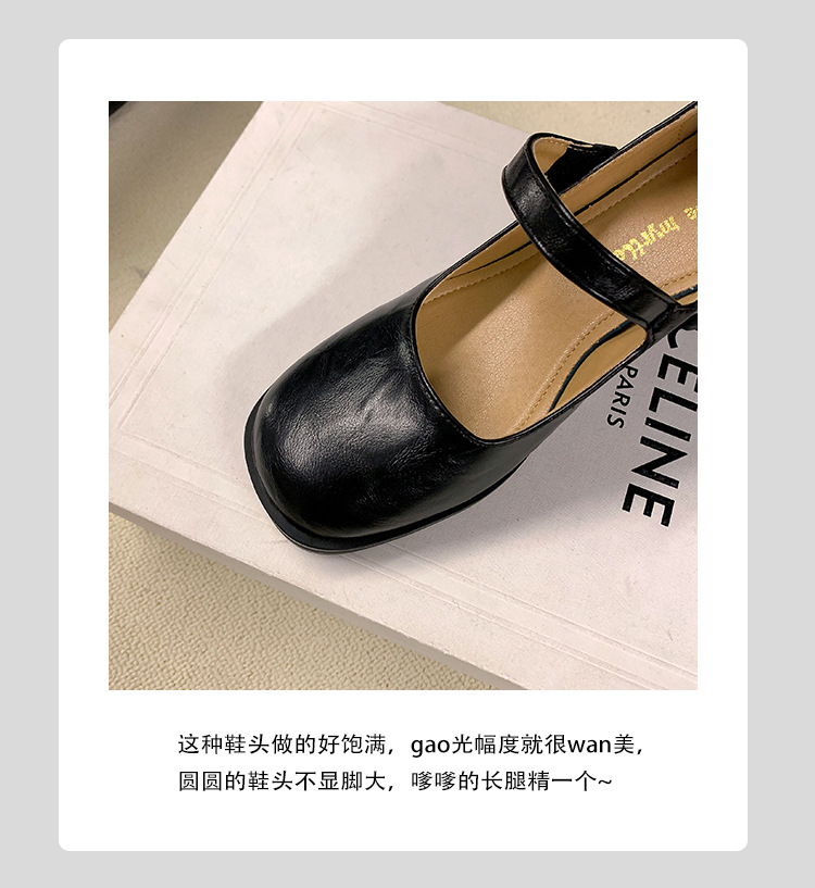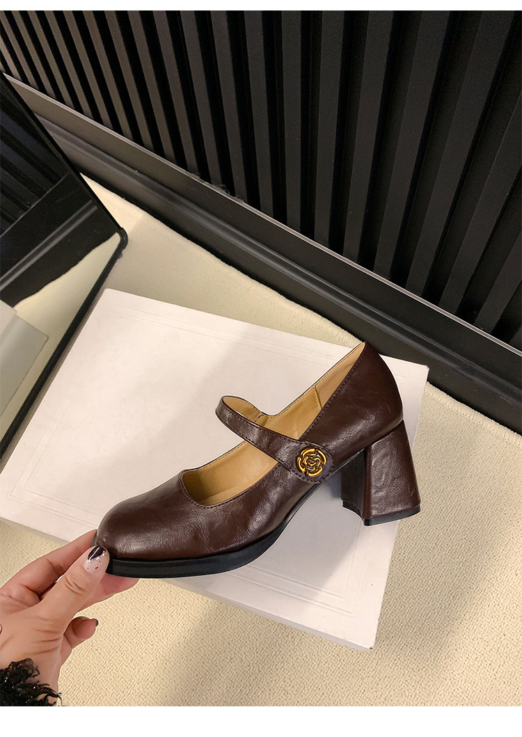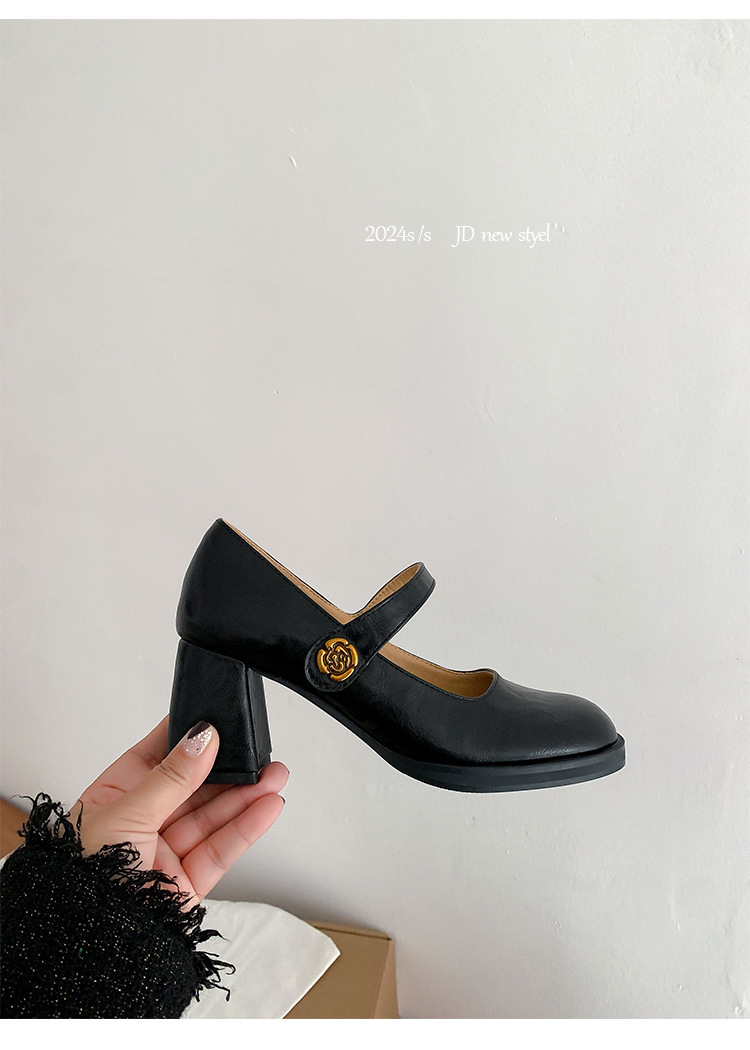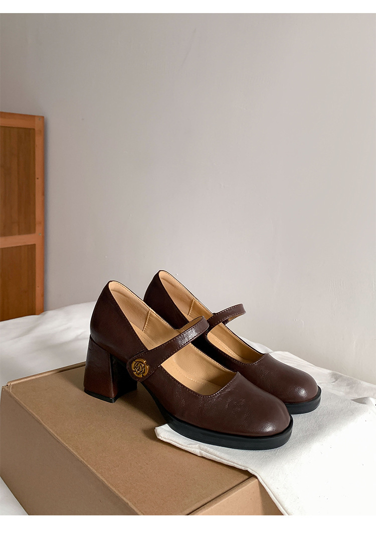 Коровья кожа версия ~ Кожаные французские туфли Мэри Джейн женский школьный стиль ретро квадратная голова пряжка, неглубокие туфли на высоком каблуке