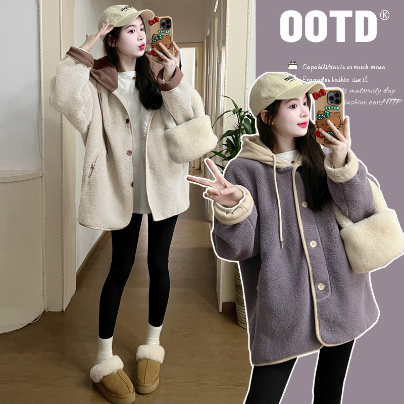 Одежда для беременных осенью и зимой мода мода мама новый бархат утолщенная шерсть ягненка пальто большого размера утолщенная высокое качество баранина
