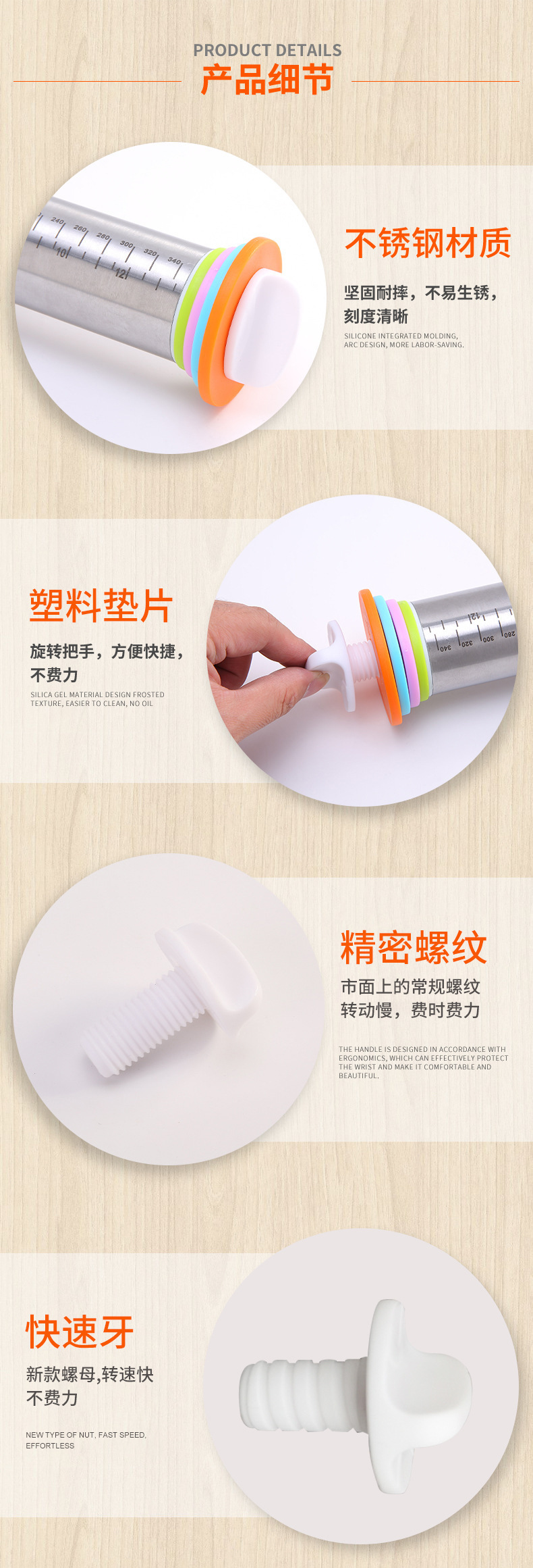 Спотовая нержавеющая сталь Регулируемая толстая скалка антипригарная