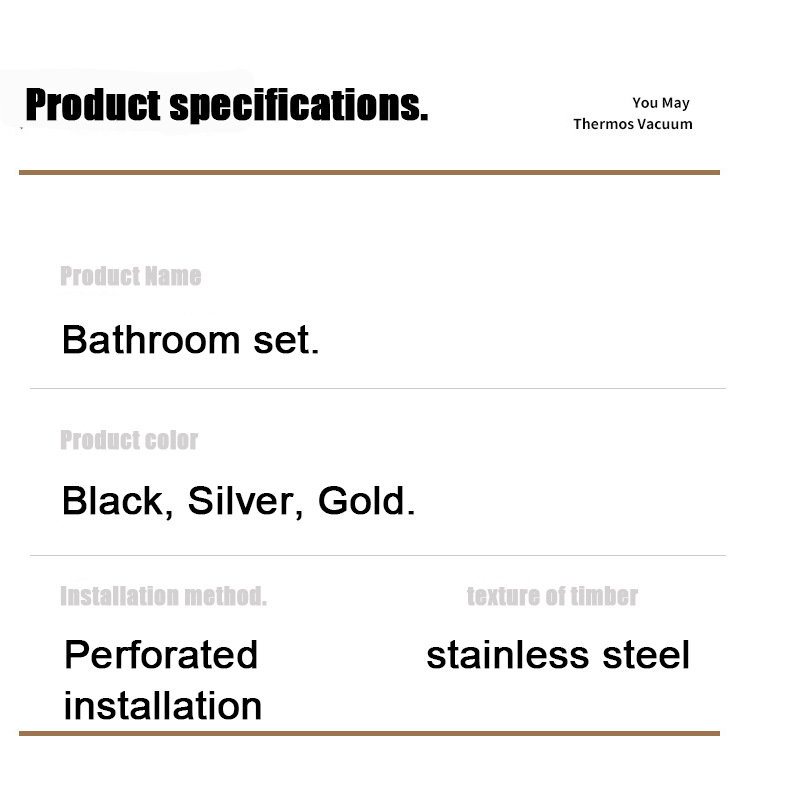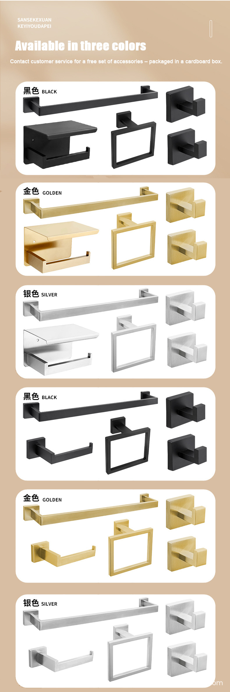 Перфорированный набор для ванной комнаты из пяти предметов 1 (60 см) - черный (более подробную информацию можно получить в службе поддержки клиентов); Набор из пяти предметов для ванной комнаты с перфорацией 1-(60см)-серебристый; Набор из пяти предметов для ванной комнаты с перфорацией 1-(60см)-золото; Набор из пяти предметов для ванной комнаты с перфорацией 2-(60см)-черный; Набор из пяти предметов для ванной комнаты с перфорацией 2-(60см) серебро; Набор из пяти предметов для ванной комнаты с перфорацией 2-(60см) золото; Набор из пяти предметов для ванной комнаты с перфорацией 3-(40см)-черный; Набор из пяти предметов для ванной комнаты с перфорацией 3-(40см)-серебристый; Набор из пяти предметов для ванной комнаты с перфорацией 3-(40см)-золото; Набор из пяти предметов для ванной комнаты с перфорацией 4-(40см)-черный; Набор из пяти предметов для ванной комнаты с перфорацией 4-(40см)-серебристый; Набор из пяти предметов для ванной комнаты с перфорацией 4-(40см)-золото; Вешалка для полотенец-черный; Вешалка для полотенец-серебро; Вешалка для полотенец-золото; Кольцо для полотенца - черное; Кольцо для полотенца-серебро; Кольцо для полотенца - золото; Крючок-черный; Крючок-Серебро; Крючок-золото; Водонепроницаемый держатель для бумажных полотенец-черный; Водонепроницаемый держатель для бумажных полотенец-серебристый; Водонепроницаемый держатель для бумажных полотенец-золото; Бар для бумажных полотенец-черный; Полотенцесушитель бумажный-серебристый; Полотенцесушитель-золото