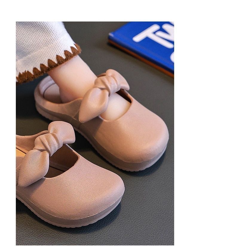 Летние детские закрытые тапочки с модным бантом, нескользящие, с защитой от ударов, на мягкой подошве, подходят для мальчиков и девочек, сандалии-слайды для малышей для улицы.
