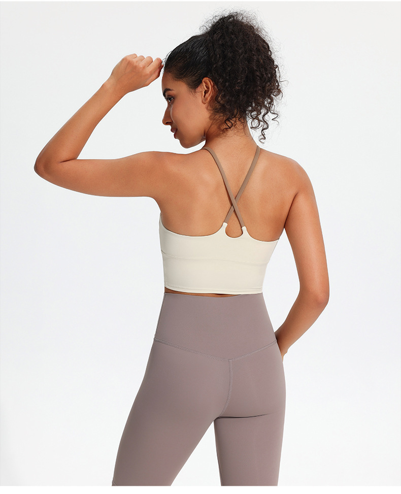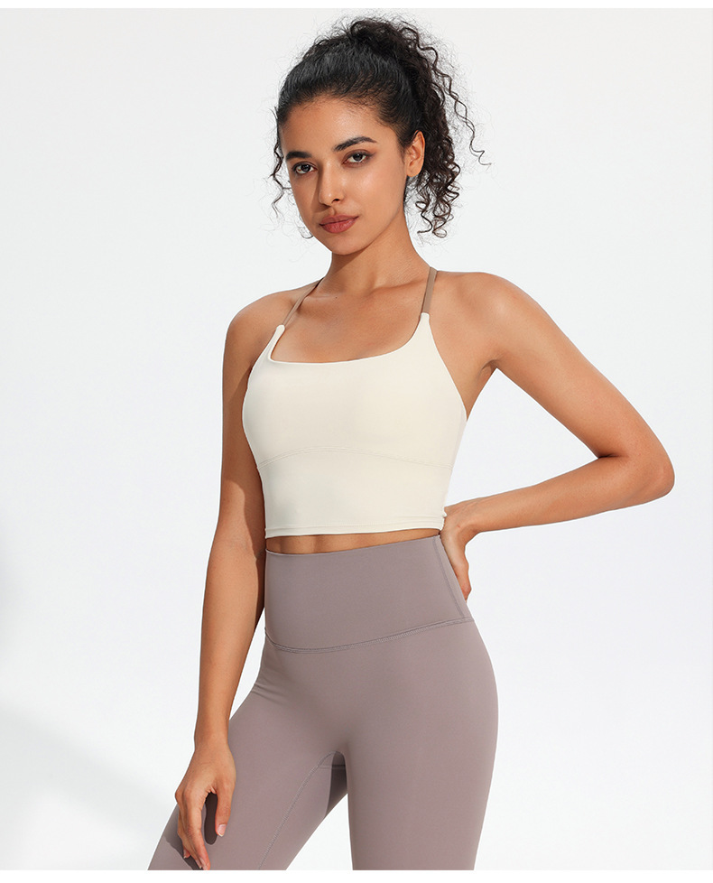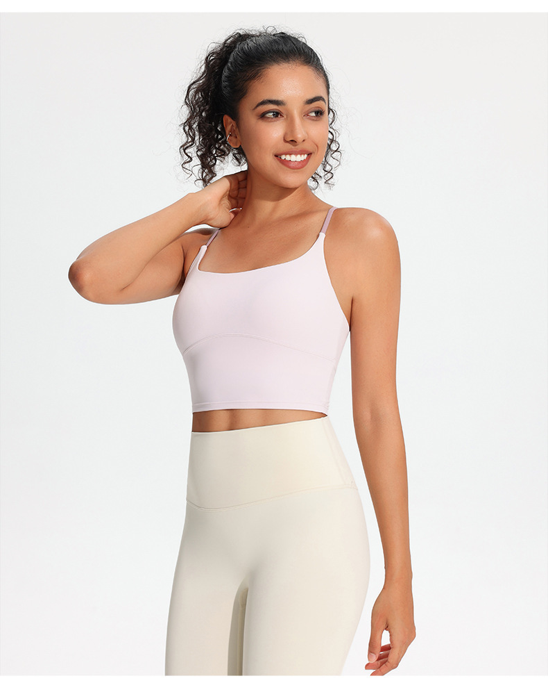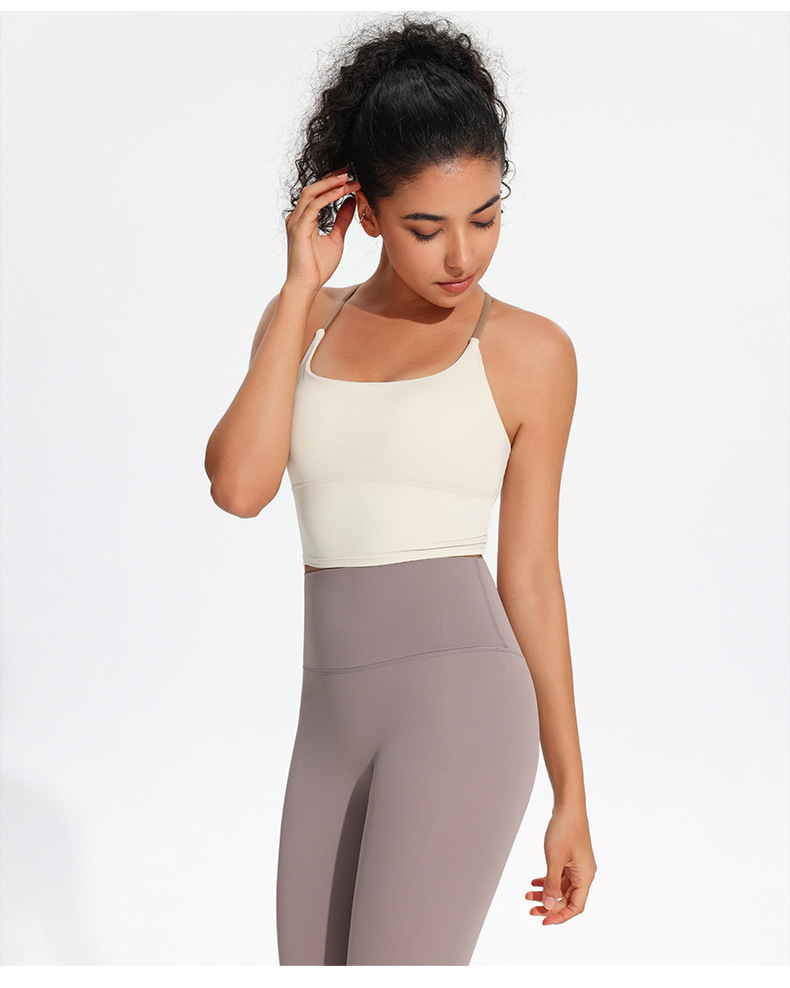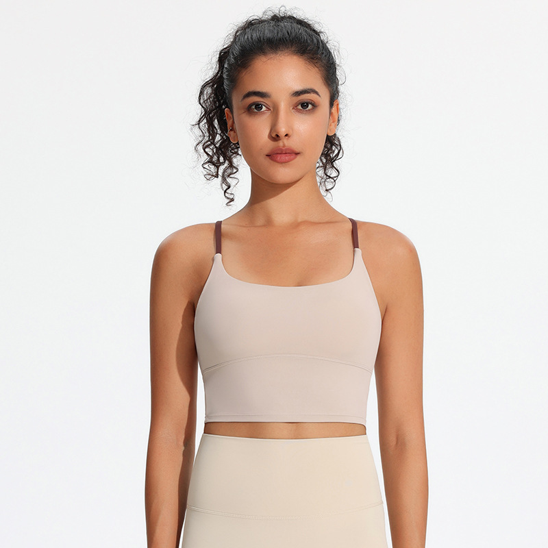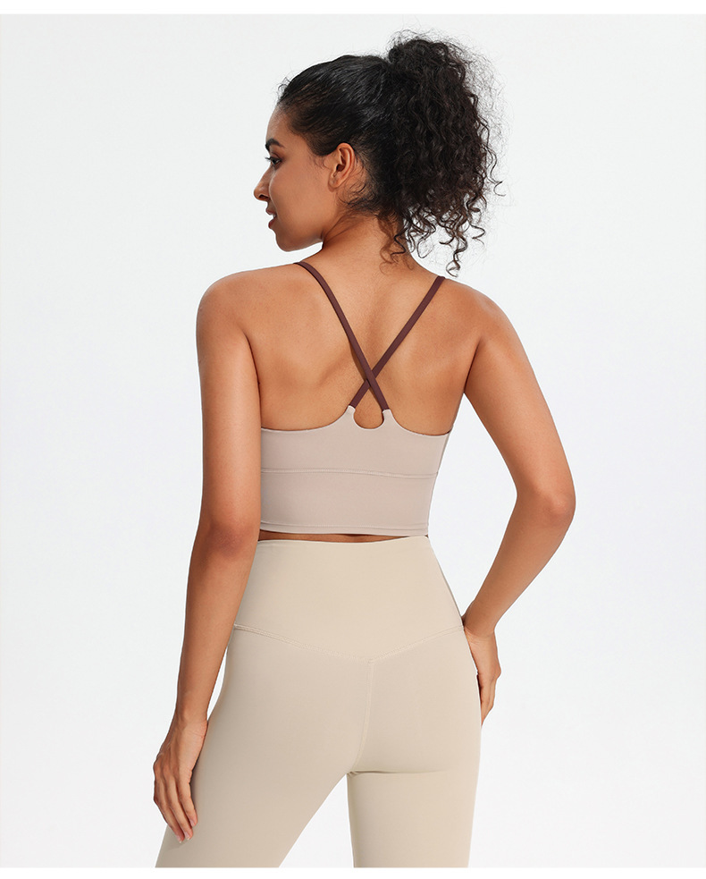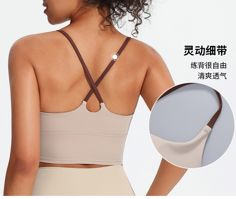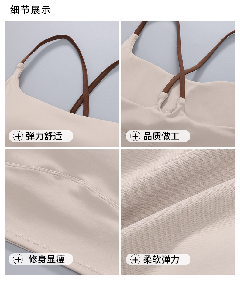 Спортивный топ-жилет с контрастной расцветкой, фиксированной подкладкой на груди, бесшовный, телесного цвета, с вырезами, для йоги и фитнеса.