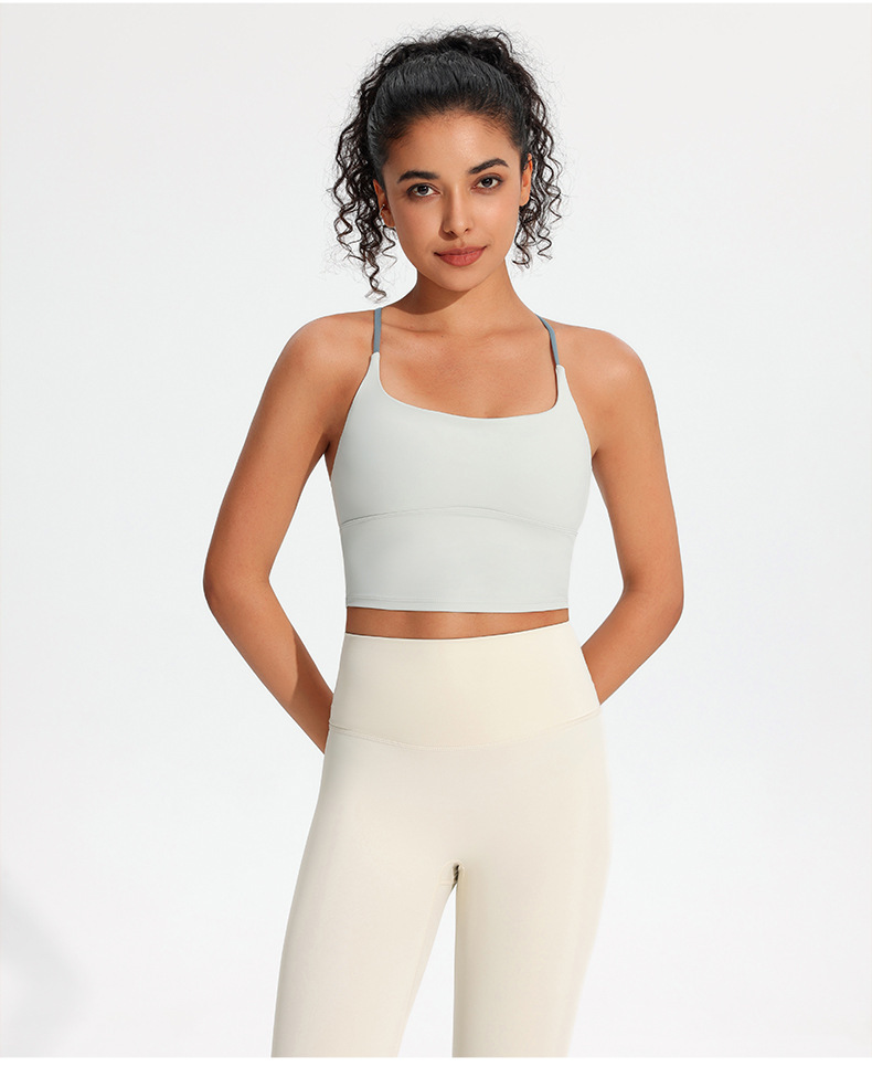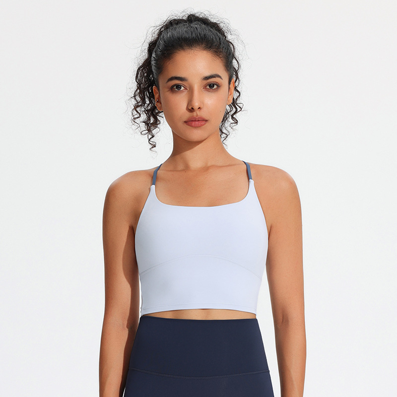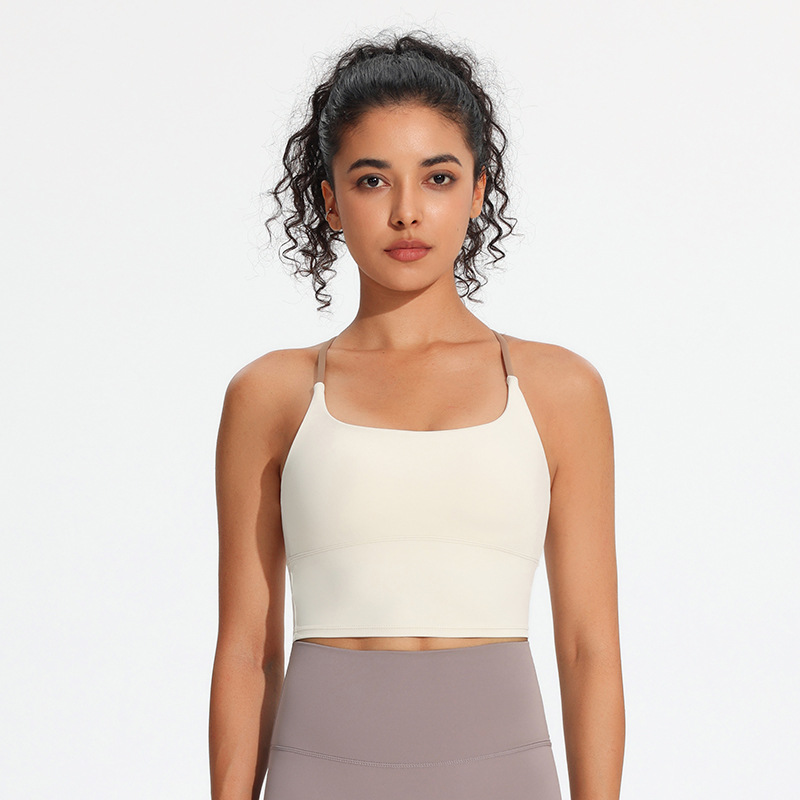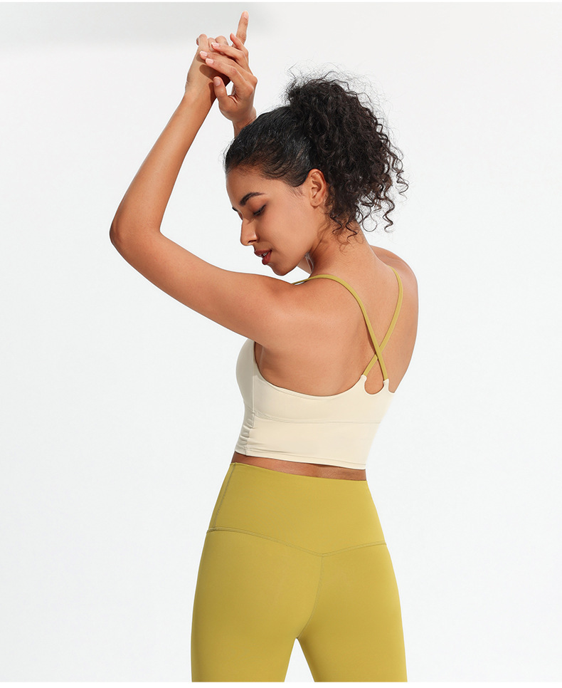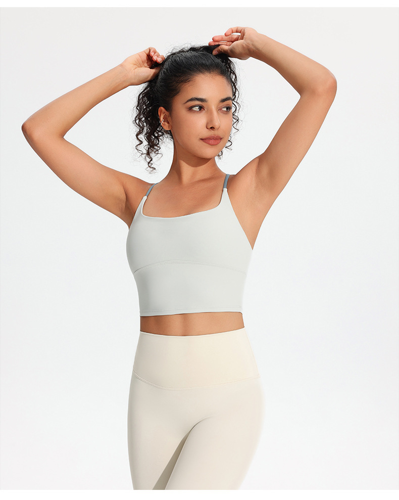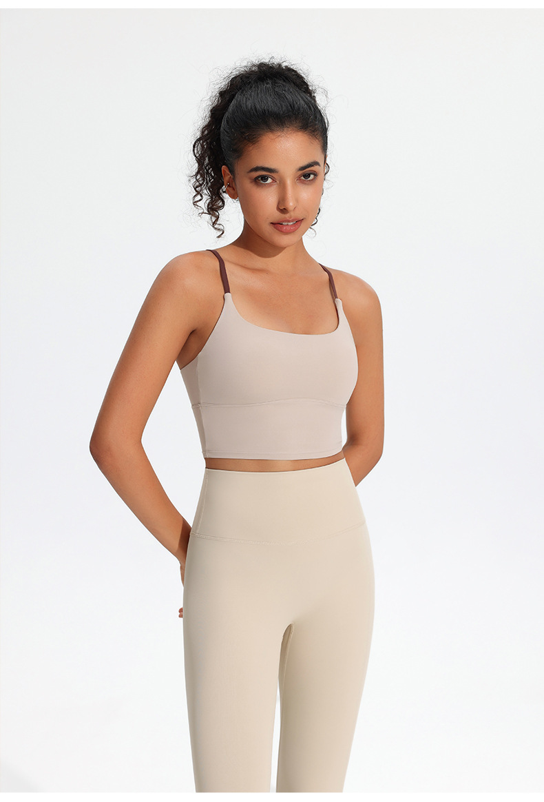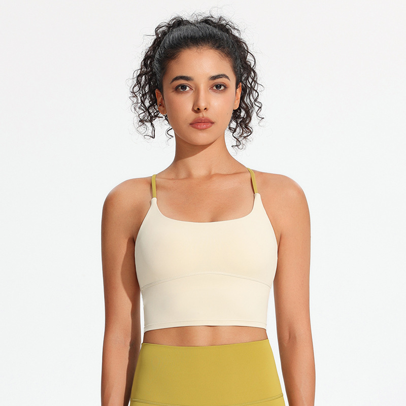Спортивный топ-жилет с контрастной расцветкой, фиксированной подкладкой на груди, бесшовный, телесного цвета, с вырезами, для йоги и фитнеса.