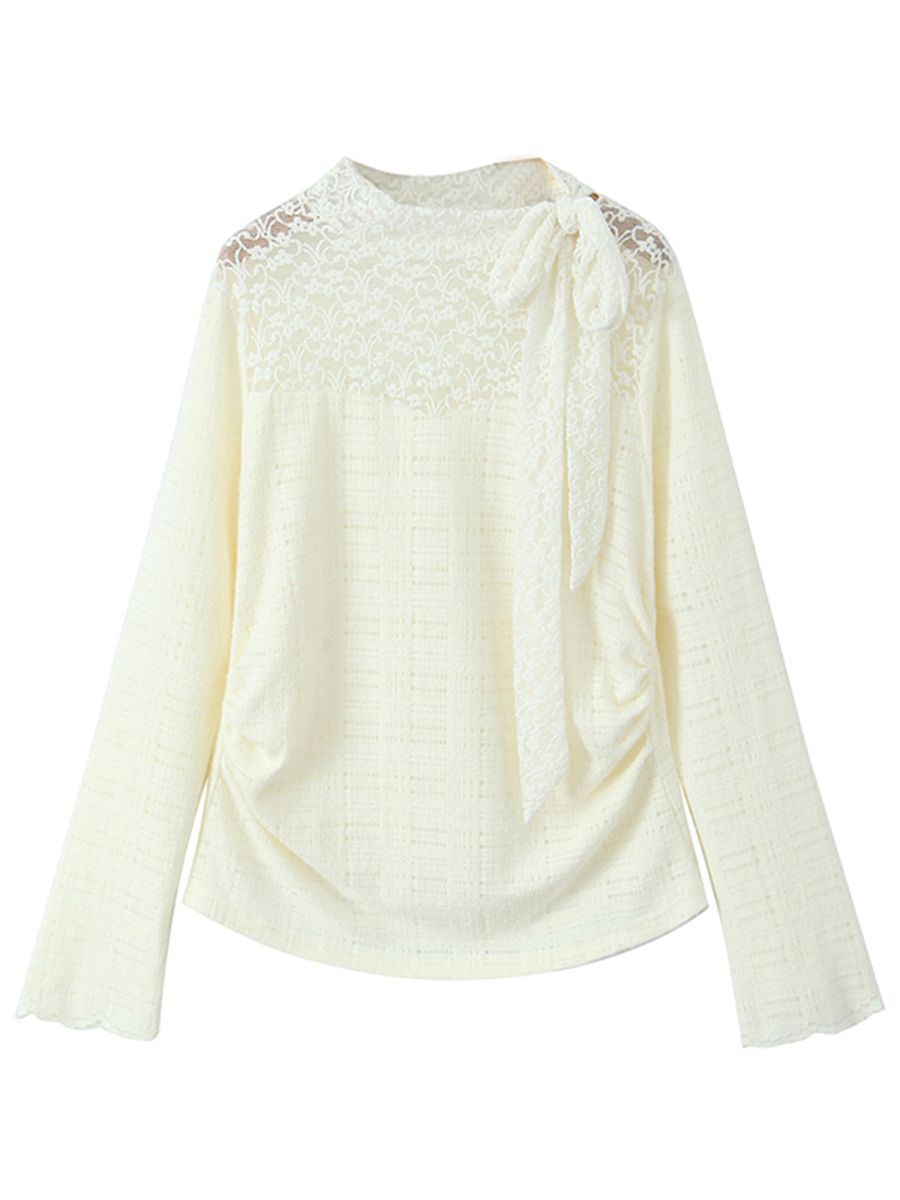 Лента с бантом Сплиссированная кружевная рубашка Run его 9113 плюс размер дизайн высокого класса шикарная кружевная футболка