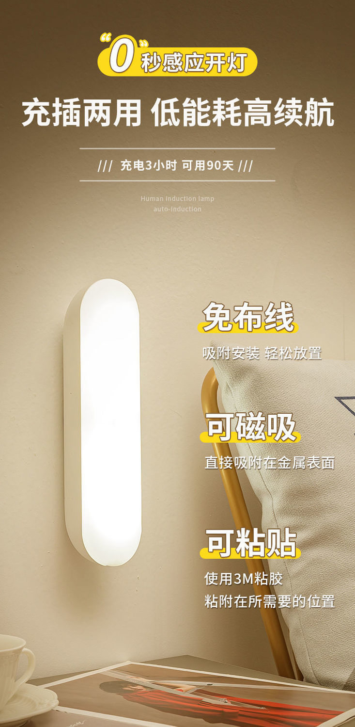 [Загорается, когда люди приходят - из человека] Индукционная модель - белый свет; [Загорается, когда люди приходят - из человека] Индукционная модель - желтый свет