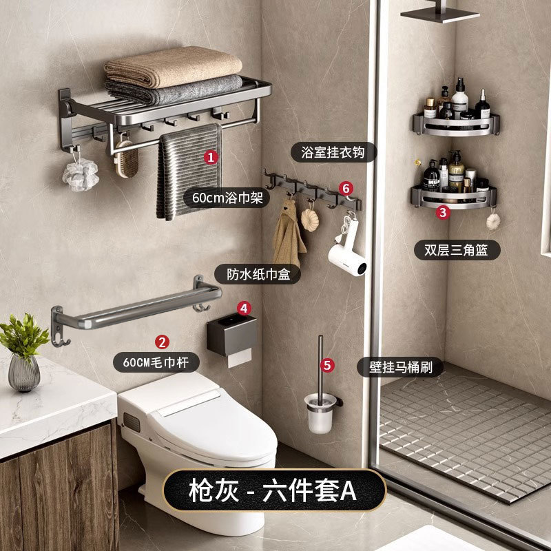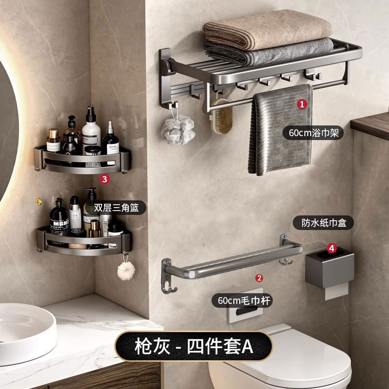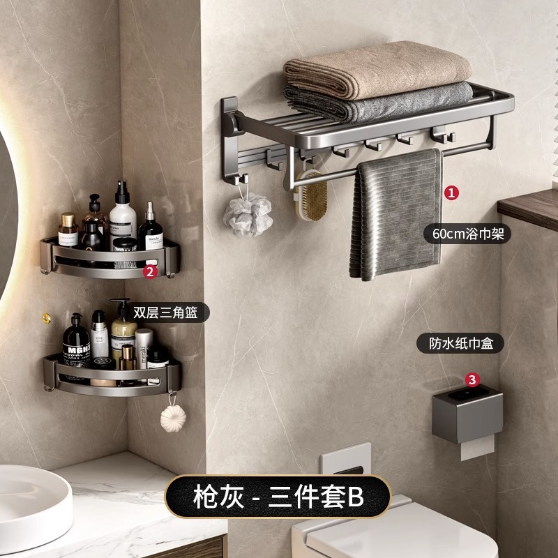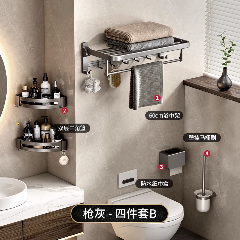 Элегантная утолщенная вешалка для банных полотенец серого цвета, 50 см, основной стиль изображения; Элегантная утолщенная вешалка для банных полотенец Gun Grey, 60 см, основной стиль изображения; Владелец магазина рекомендует серый комплект из двух предметов, элегантный стиль.; Владелец магазина рекомендует серый комплект из 2 предметов B в элегантном стиле.; Владелец магазина рекомендует серый комплект из трех предметов, элегантный стиль.; Владелец магазина рекомендует серый пистолетный комплект из 3 предметов B в элегантном стиле.; Классическая рекомендуемая серая элегантная вешалка для банных полотенец, набор из 4 предметов A; Классическая рекомендуемая серая элегантная вешалка для банных полотенец, набор из 4 предметов B; Экономичная элегантная вешалка для банных полотенец серого цвета, набор из 5 предметов; Экономичная элегантная вешалка для банных полотенец серого цвета, набор из 6 предметов; Вешалка для полотенец Gun Ash-Double Rod 60 см; Коробка для салфеток Gun Ash-Square; Gun Ash-Phoenix Tail 5 крючков; Пистолет Серый-Треугольный Синий Двойной слой; Вешалка для полотенец с присоской, 50 см