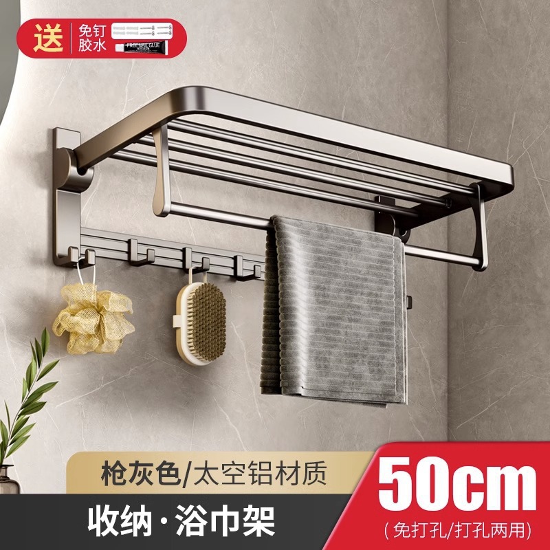 Трансграничный пистолет серый полотенце вешалка для полотенец складная туалетная стойка банное полотенце висит настенная полка для ванной комнаты