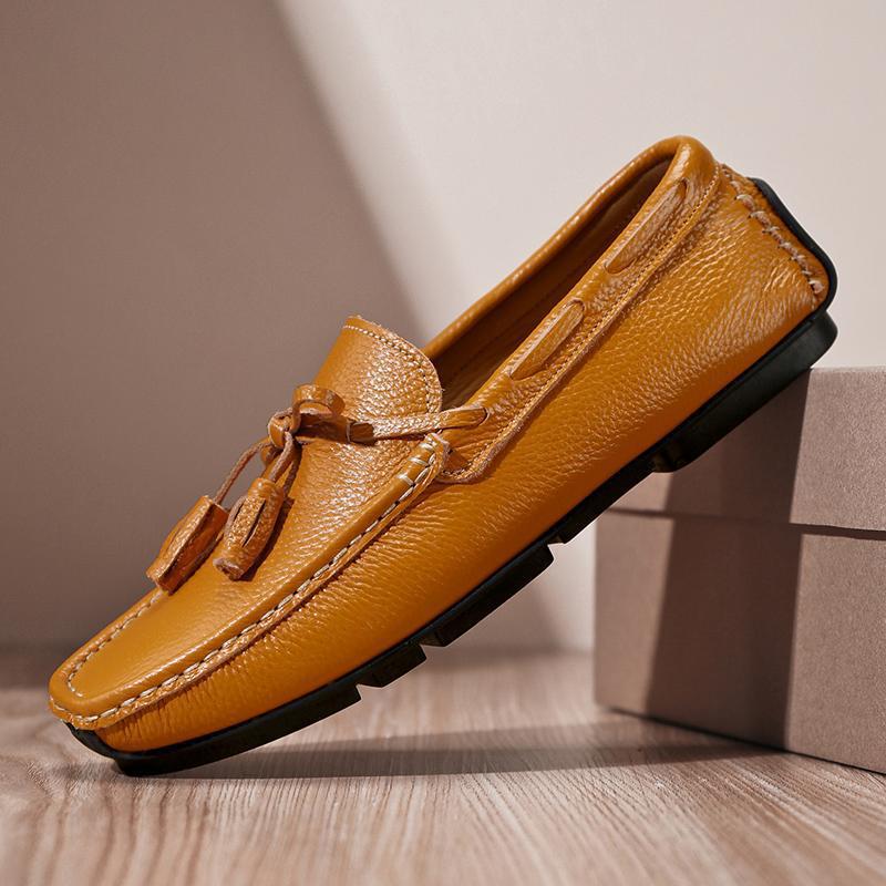 Туфли без шнуровки первого слоя из воловьей кожи, универсальные туфли для вождения на мягкой подошве.