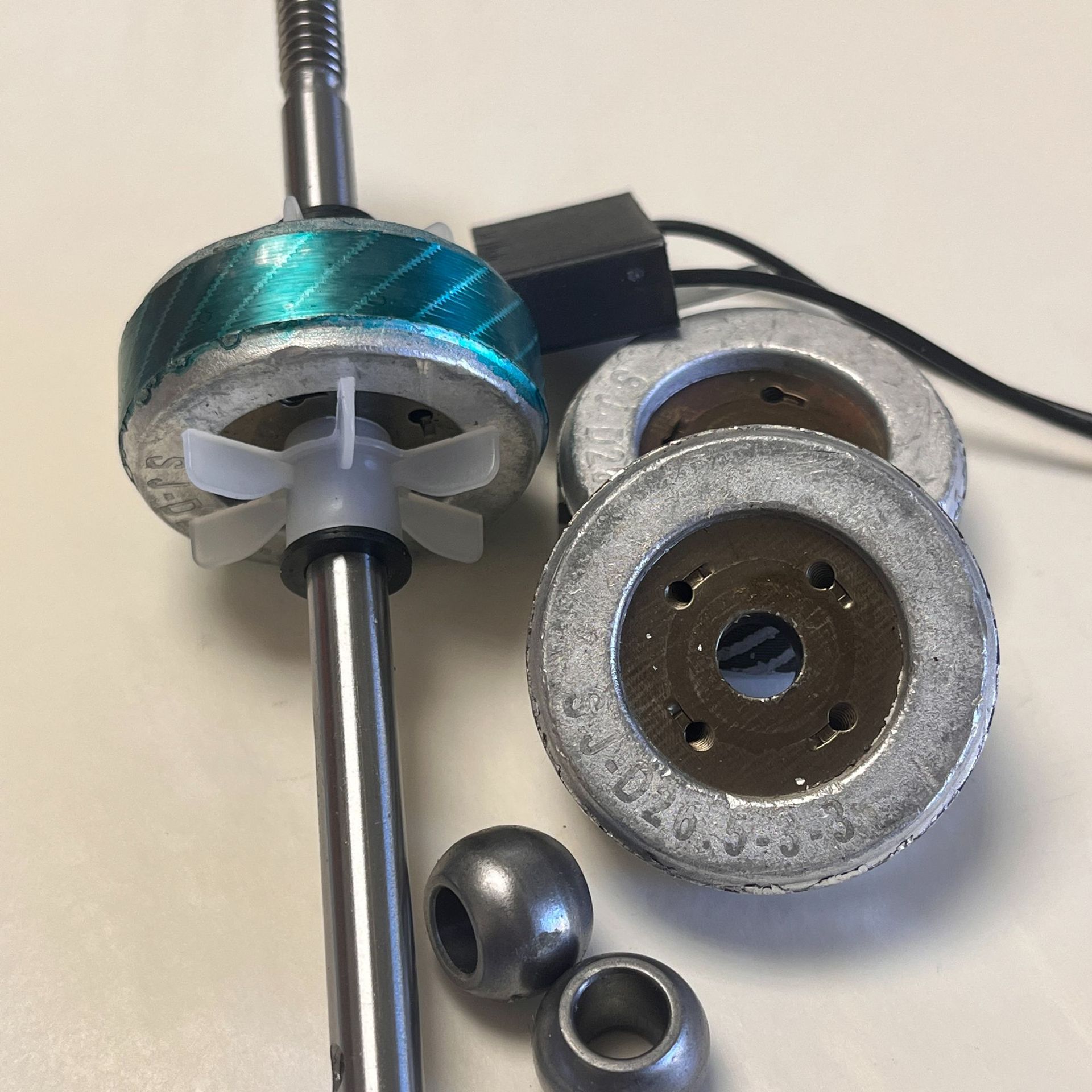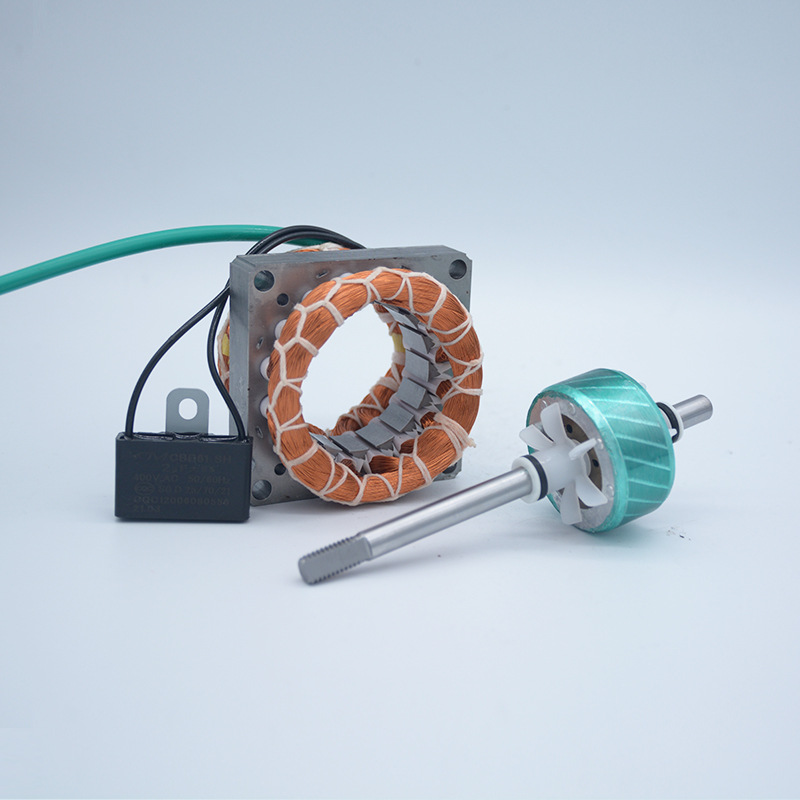 Статор, ротор, катушка обмотки, конденсатор, коробка передач, корпус, лопасть вентилятора