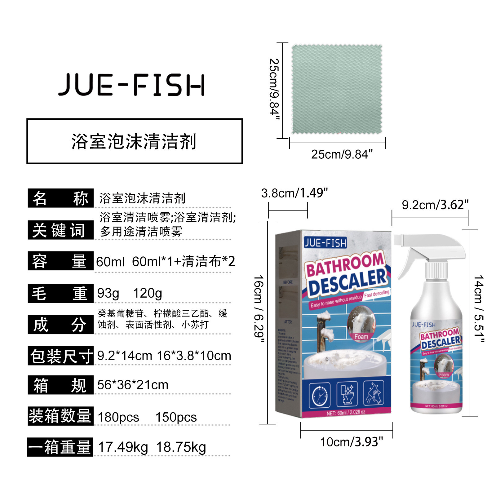 60ml; 60 мл в упаковке; полотенце; синяя квадратная губка