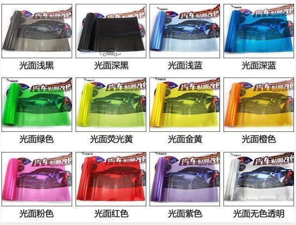Матовый черный; Глянцевый светло-черный; Глянцевый темно-черный; глянцевый светло-голубой; глянцевый темно-синий; глянцевый красный; глянцевый розовый; глянцевый зеленый; глянцевый фиолетовый; глянцевый золотой; глянцевый и прозрачный; хамелеон фиолетовый; хамелеон прозрачный; Хамелеон синий; Хамелеон красный